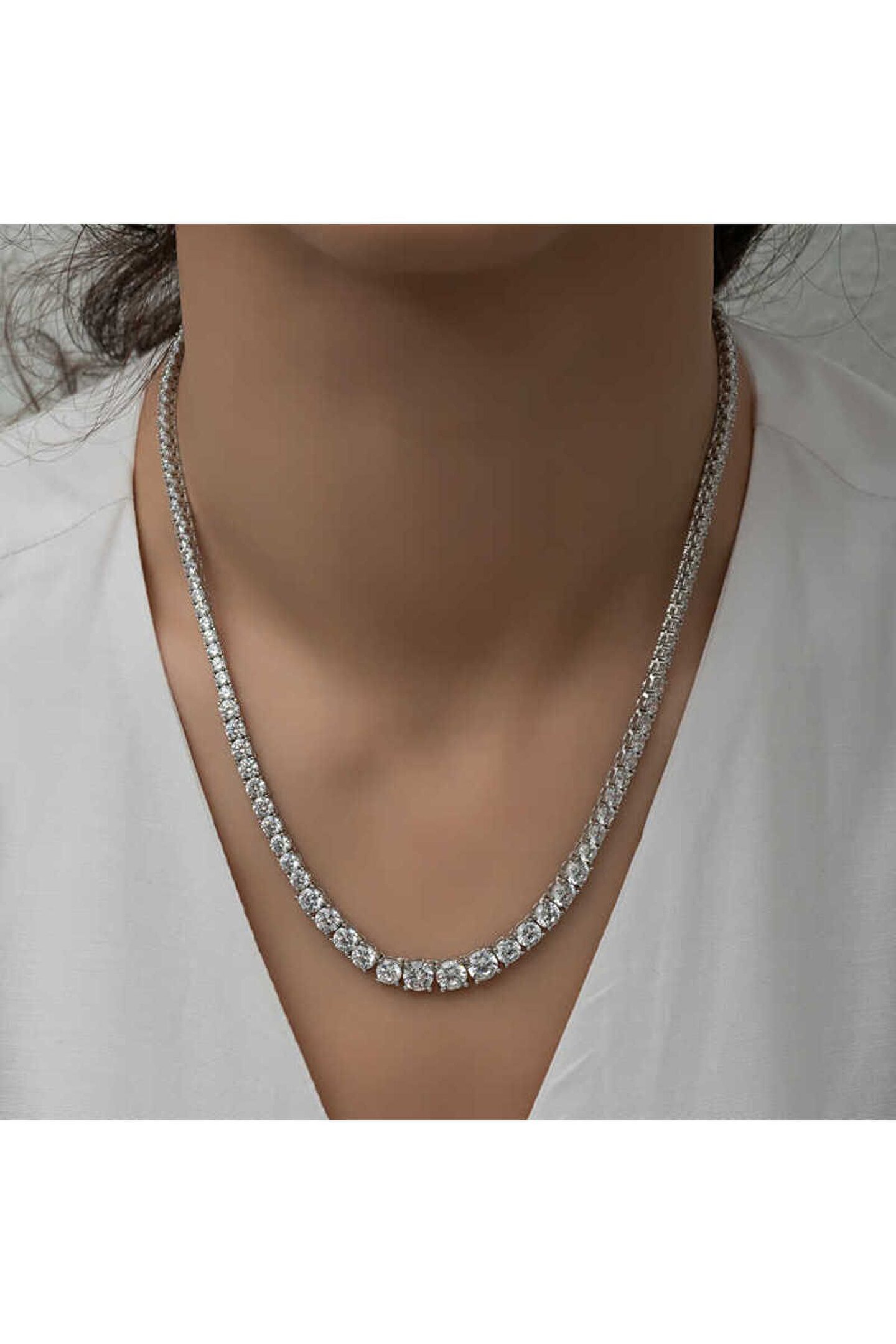 Samur Parti Parti Aksesuar & Kostüm Gümüş Süzme Beyaz Taşlı Su Yolu Kadın Kolye