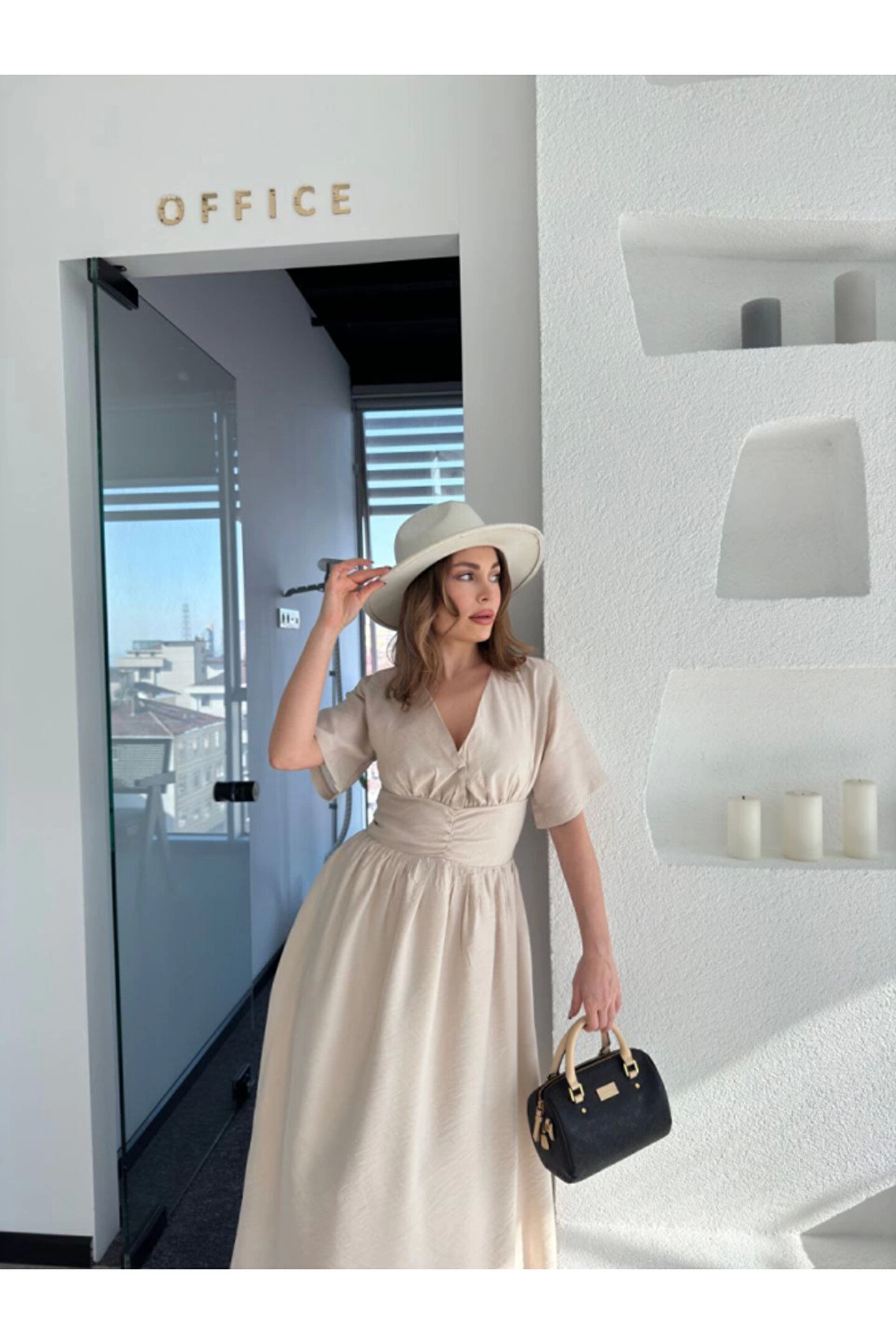 ruum fashions Kısa Kollu Uzun Elbise - Kırık Beyaz
