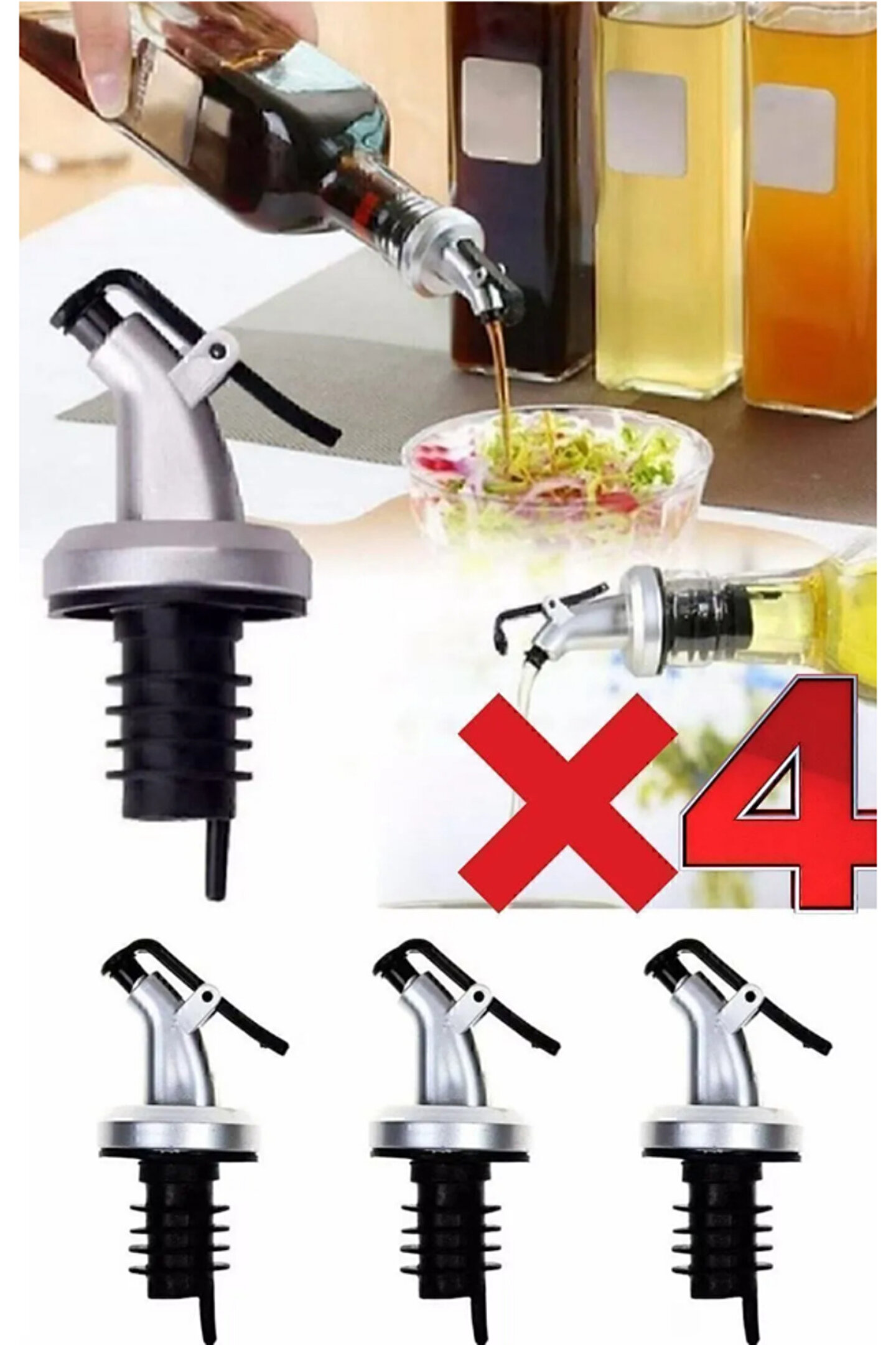 - Dört adet aynı boyutta kapaklı yağdanlık başlığı, yağ sirke sos gibi malzemeler için ideal saklama çözümü sunar.; - Damlatmaz tasarımı sayesinde yağların ve sırların dökülmesini önler, temizlik kolaylığı sağlar.; - Kolay temizlenebilir yapısı ile hijyenik kullanım imkanı sunar.; - Mutfakta düzeni koruyarak, yağ ve sırların karışmasını önleyerek pratik bir kullanım sunar.; - Çok amaçlı olarak tasarlanmış bu yağdanlıklar, hem yağlık hem de sosluk olarak kullanılabilir; mutfakta işlevsellik kazandırır.