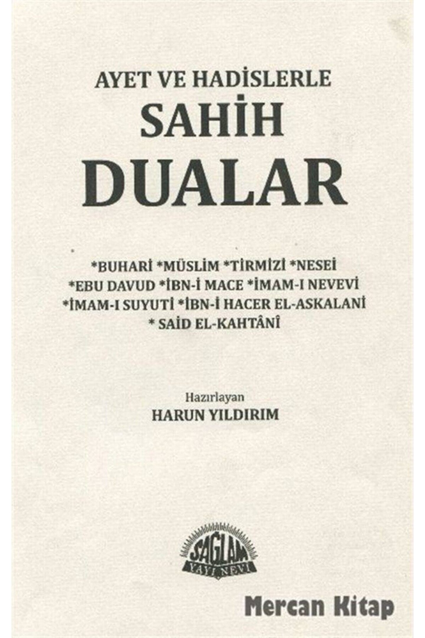 Ayet ve Hadislerle Sahih Dualar Dua ile Tedavi, Rukye İmam Nesai, İmam-ı Buhari, İbn Hacer el-Askalani, İmam Tirmizi, İmam Suyuti, Said el-Kahtani / Sağlam Yayınları Basım Yılı: 2012; Baskı: 1; Sayfa Sayısı: 495; Kağıt Türü: İthal Kağıt; Ebat: 16,5 x 24,5; Dil: Türkçe; Cilt Durumu: Ciltli; ISBN: 9759180744; Yazar: İmam Nesai, İmam-ı Buhari, İbn Hacer el-Askalani, İmam Tirmizi, İmam Suyuti, Said el-Kahtani, İmam Müslim, İbn-i Mace, İmam Muhyiddin en-Nevevi, İmam Hafız Ebu Davud; Çevirmen: Harun Yıldırım; Ayet ve Hadislerle Sahih Dualar "Dua bir İbadettir ibadetlerin özüdür. Tüm hayatı içine alıp kucaklayan bir ibadet olarak duanın en belirgin vasfı tevazudur. Ancak kibirden arınmış insanlar dua etmeye yanaşırlar. Yaratıcıya sunabilecekleri tek geçer akçedir dua. Çünkü O'nun katında malın-mülkün bir ömrün boş yere harcandığı uğrunda savaşlar verilen beşeri değerlerin bir kıymeti yoktur. Bizi O'nun katında değerli kılan ve rızasına yaklaştıran tek değerdir dua. Dua yaradılış gayesi olan ibadetin en önemli unsurlarından birirdir. Ve cinleri ve insanları yalnızca bana ibadet etmeleri için yarattım diyerek varoluş gayemizi beyan eden Rabbimiz şüphesiz aklı selim sahipleri için en doğru hedefi göstermiştir. Rabbiniz Buyuruyor ki Bana dua edin duanızı kabul edeyim. Bana kibirlenerek kulluk etmeye tenezzül etmeyenler mutlaka aşağılanmış olarak cehenneme gireceklerdir.'' (Mümin suresi 60) "Ey iman edenler! Allah'ı Çokça anın ve sabah akşam O'nun Şanını Yüceltin.'' (Ahzab suresi 41-42) "Deki: 'Sizin dua ve kulluğunuz olmasa Rabbim size ne diye değer versin ki?'' (Furkan suresi 77) Dua etmenin bazı edepleri ve kabul edilme sebepleri. Duanın Kabul edildiği yerler Haller ve Vakitler. Kitap ve Sünnetten dualar Kitap ve sünnetten rukye ile tedavi Kuran ve sünnet ile tedavinin önemi. Sihrin Tedavisi göz değmesi Nazar tedavisi Kendisine cin musallat olmuş kimsenin tedavisi nefsi (psikolojik) hastalıkların tedavisi yara ve çıban tedavisi başına bir musubet gelenin tedavisi hastanın kendisini tedavi etmesi uykusunda korkan ve kabus görenin tedavisi humma (ateşli hastalıkların) tedavisi böcek ve yılan sokmasının tedavisi öfkenin tedavisi çörekotu ile tedavi mal ile tedavi zem zemsuyu ile tedavi kalp hastalıklarının tedavisi vs. gibi... Kaynak gösterilen Kitaplar: Sahihi Buhari Sahihi Müslim Süneni Tirmizi Süneni Nesei Riyazus Salihin Süneni ebu Davud İbnu Mace Cami'ul Ehadis Metalibu Aliye Hisnul Müslim'den dua Rivayetleri.