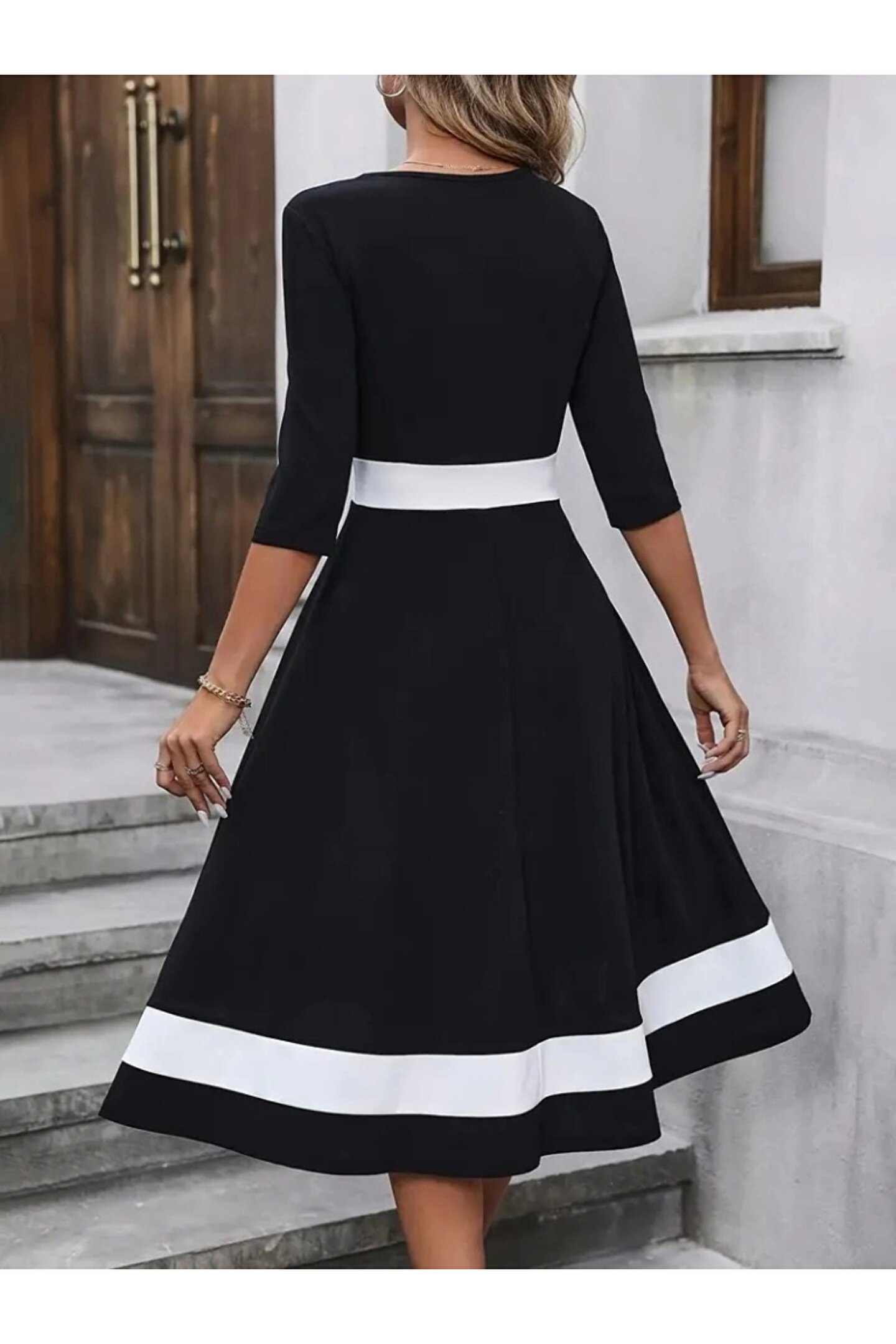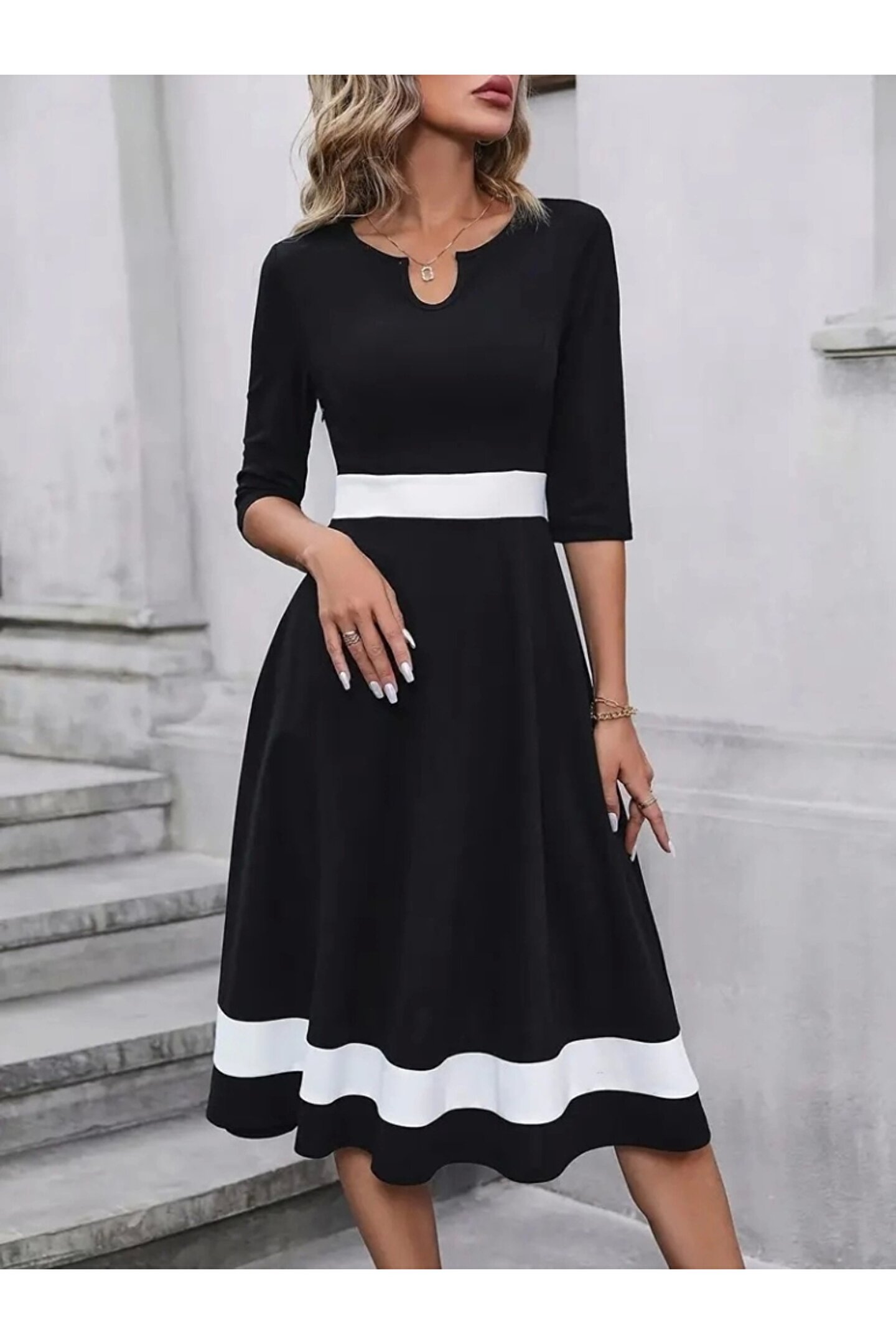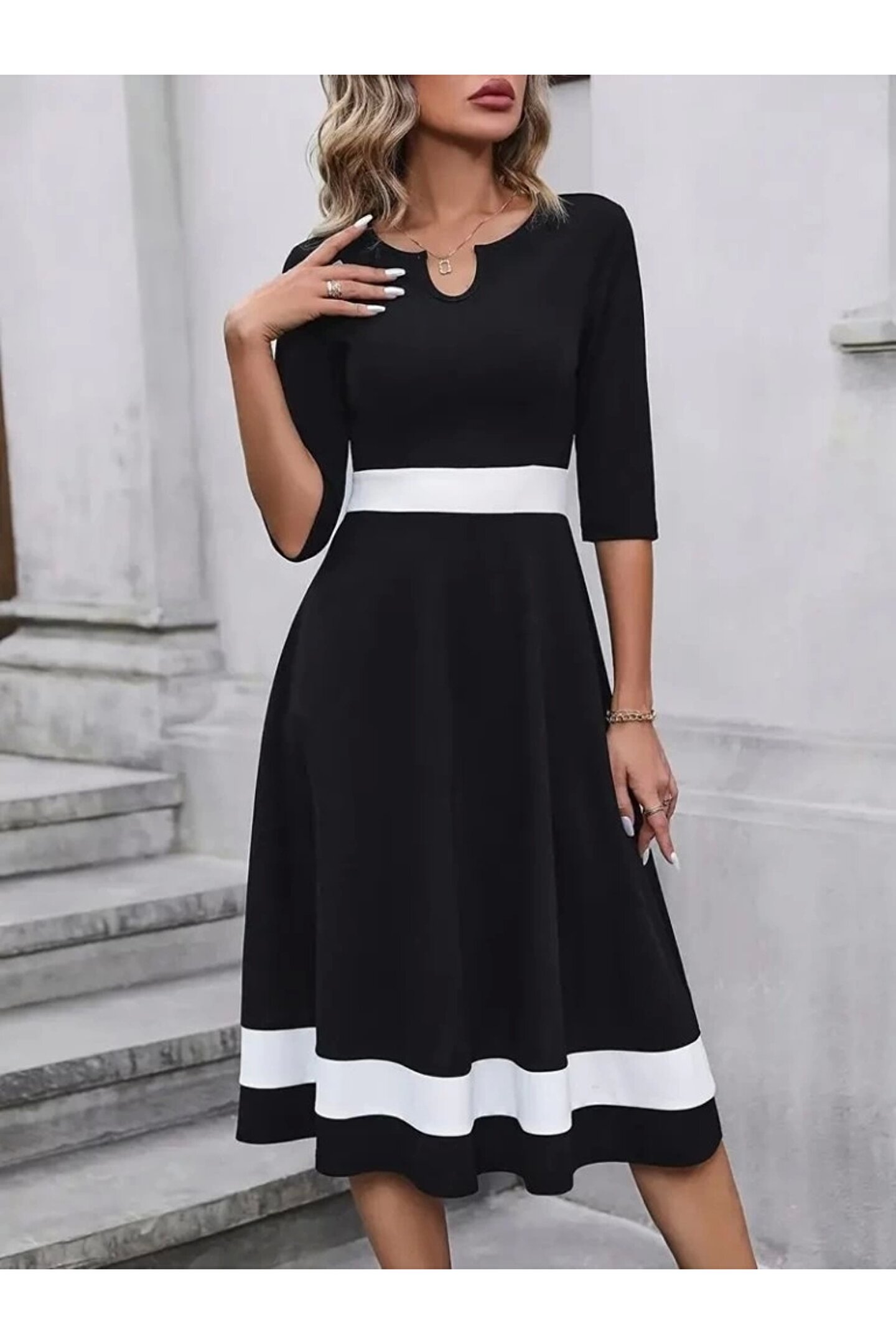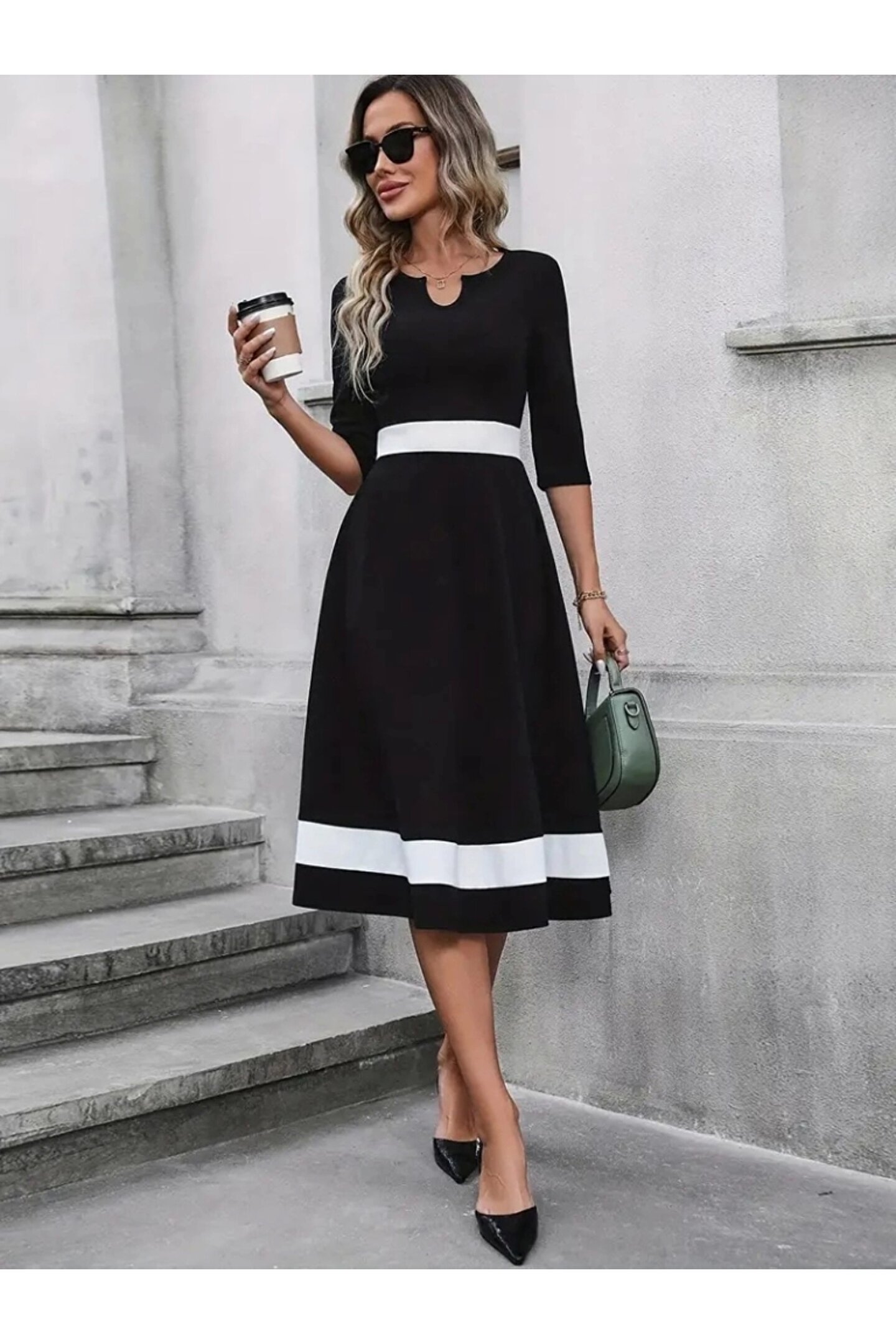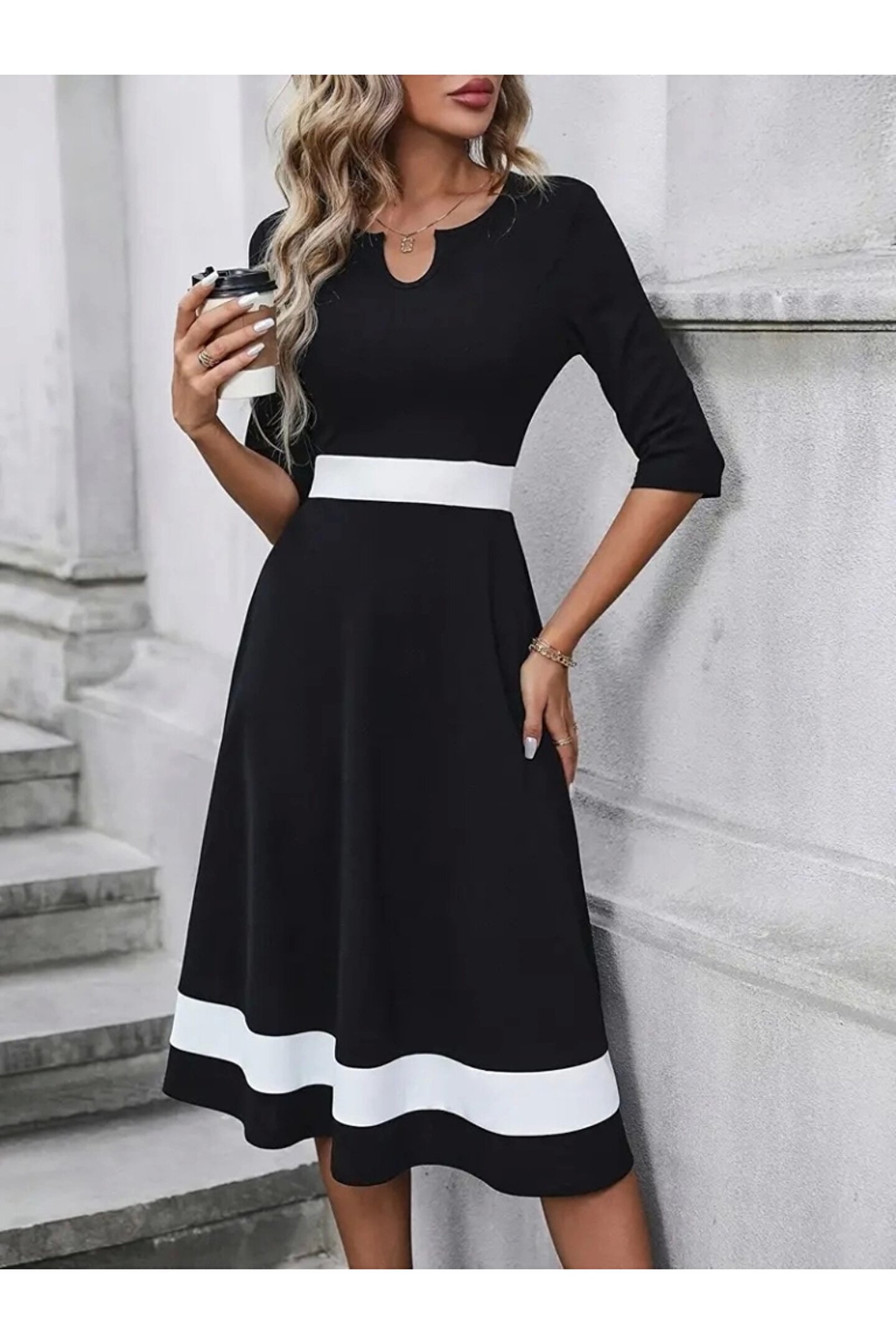 Kadın Fakir Kol Yakası Açık Blok Renkli Krep Midi Elbise bizi tercih ettiğiniz için teşekkür ederiz