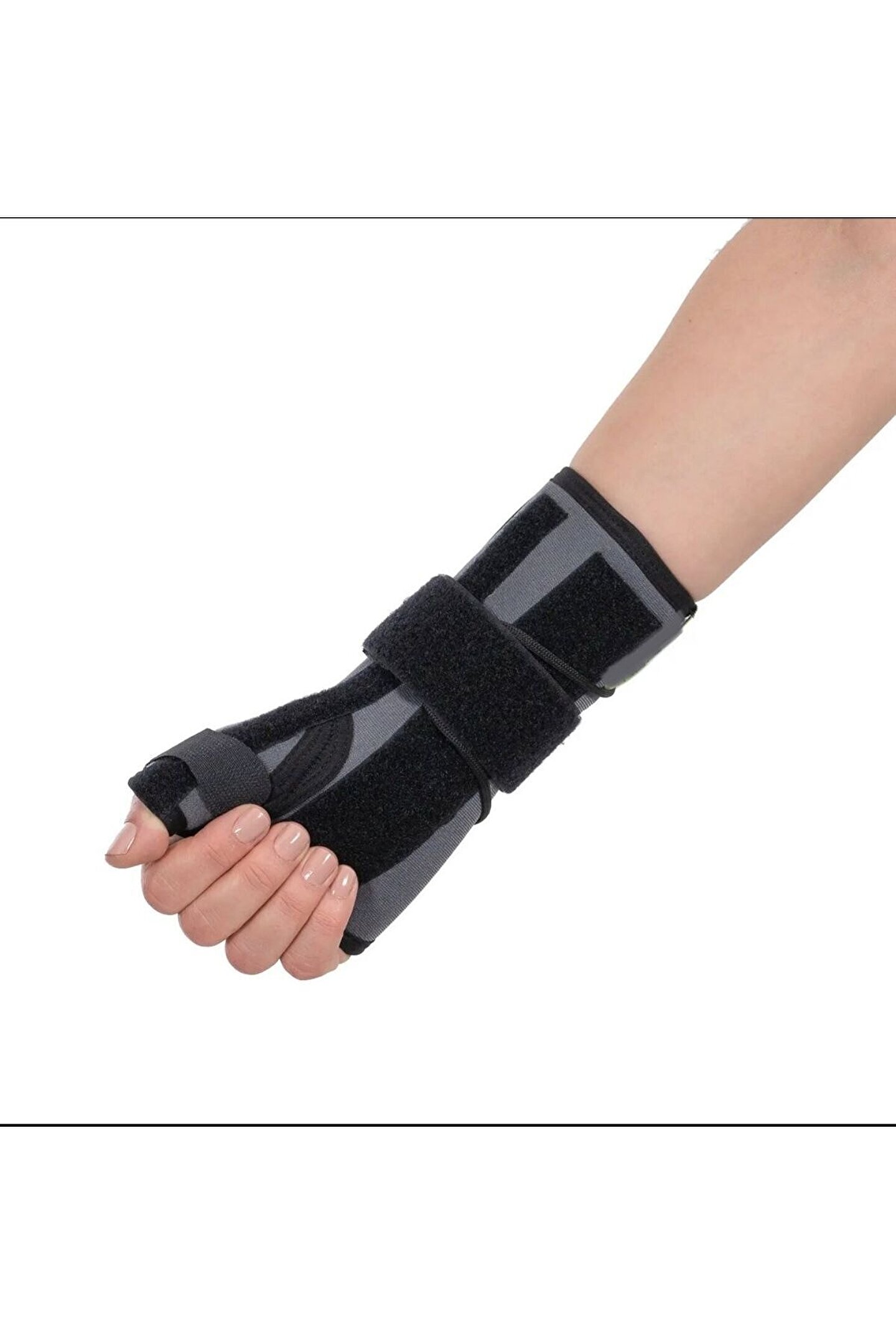 Bağcıklı Başparmak Destekli El Bilek Ateli - Sağ El ?Bileğin ve başparmağın nötral pozisyonda immobilizasyonunu sağlayan bir atel çeşididir. Bileğin alt tarafında, başparmak yanında birer alüminyum ve bileğin üst tarafında 2 adet plastik destek vardır. Üzerindeki bağcıklı sistem bileğin stabilizasyonunu sağlar. ? Endikasyonlar De quervain sendromunda ; Karpal Tünel Sendromu ; Cerrahi müdahale sonrası rehabilitasyonda ; El bileği ve başparmak kireçlenmelerinde ; Tendon ve yumuşak doku hasarlarında ;