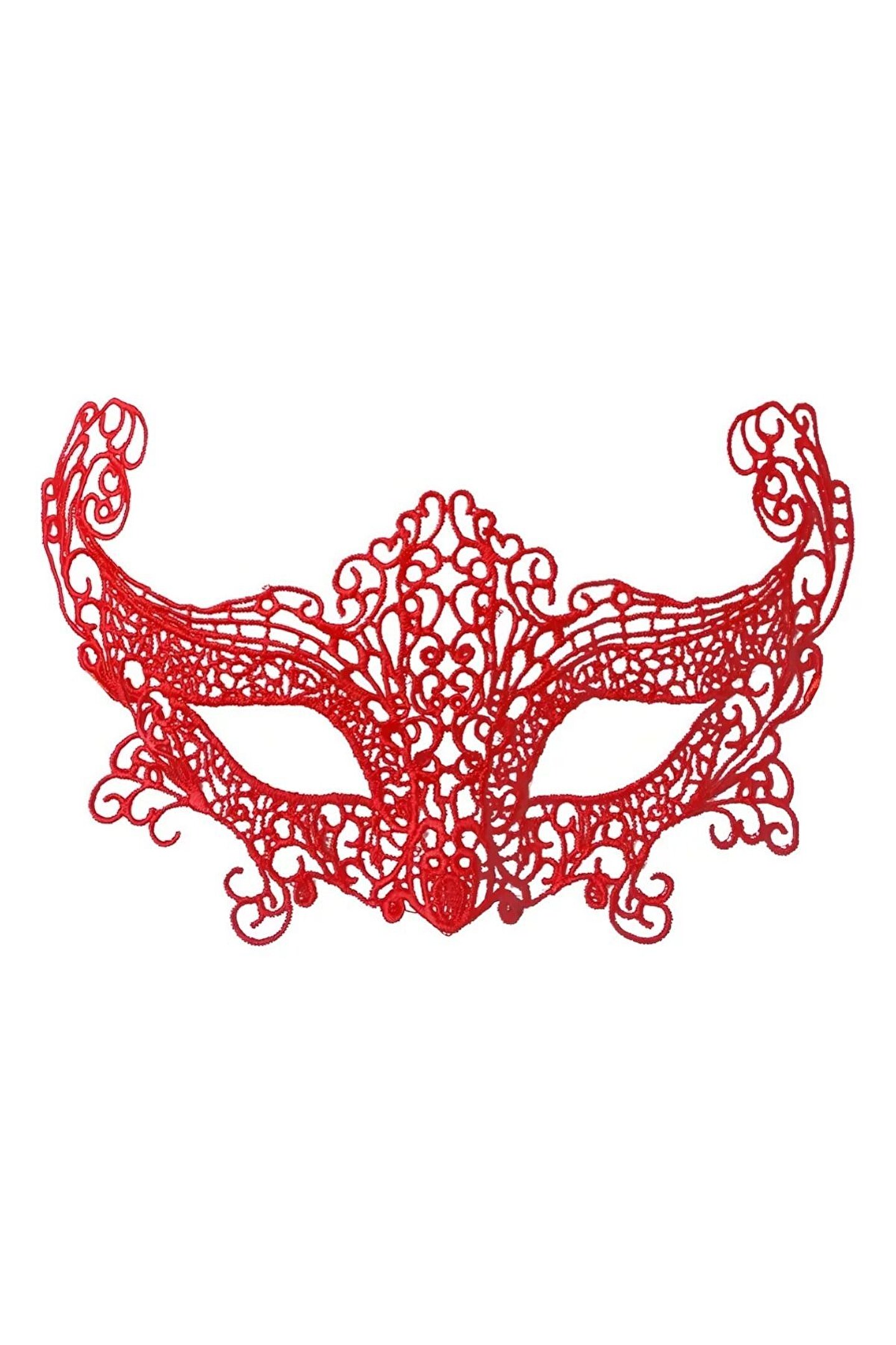 Kırmızı Renk Dantel Örgü İşlemeli Parti Maskesi Model 3