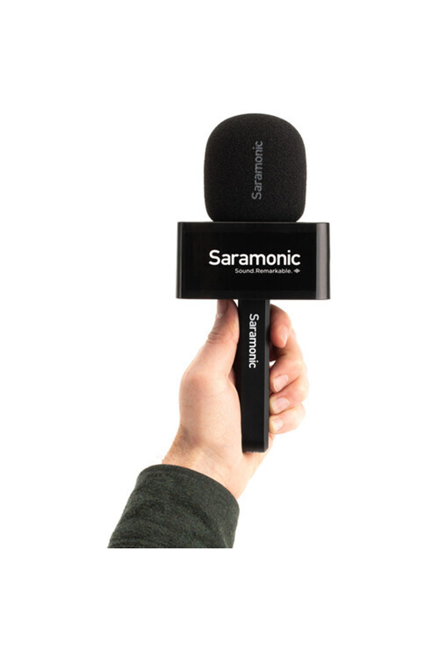 Haber raporlarını, konuşmaları, röportajları ve podcast'leri yakalamayı hızlı ve kolay hale getiren hafif ve ergonomik bir verici tutucu olan Saramonic Blink 500 Pro HM ile Blink 500 Pro TX vericinizi kablosuz bir el mikrofonuna dönüştürün . Vericiniz, dahili 1100 mAh pil ile vericinin çalışma süresini iki katına çıkaran HM tutucusuna tam olarak oturur. Tek tıklamayla eşleştirme, verici tutucuda kalırken gerçekleştirilebilir ve bu da kurulum sürecini basitleştirir.