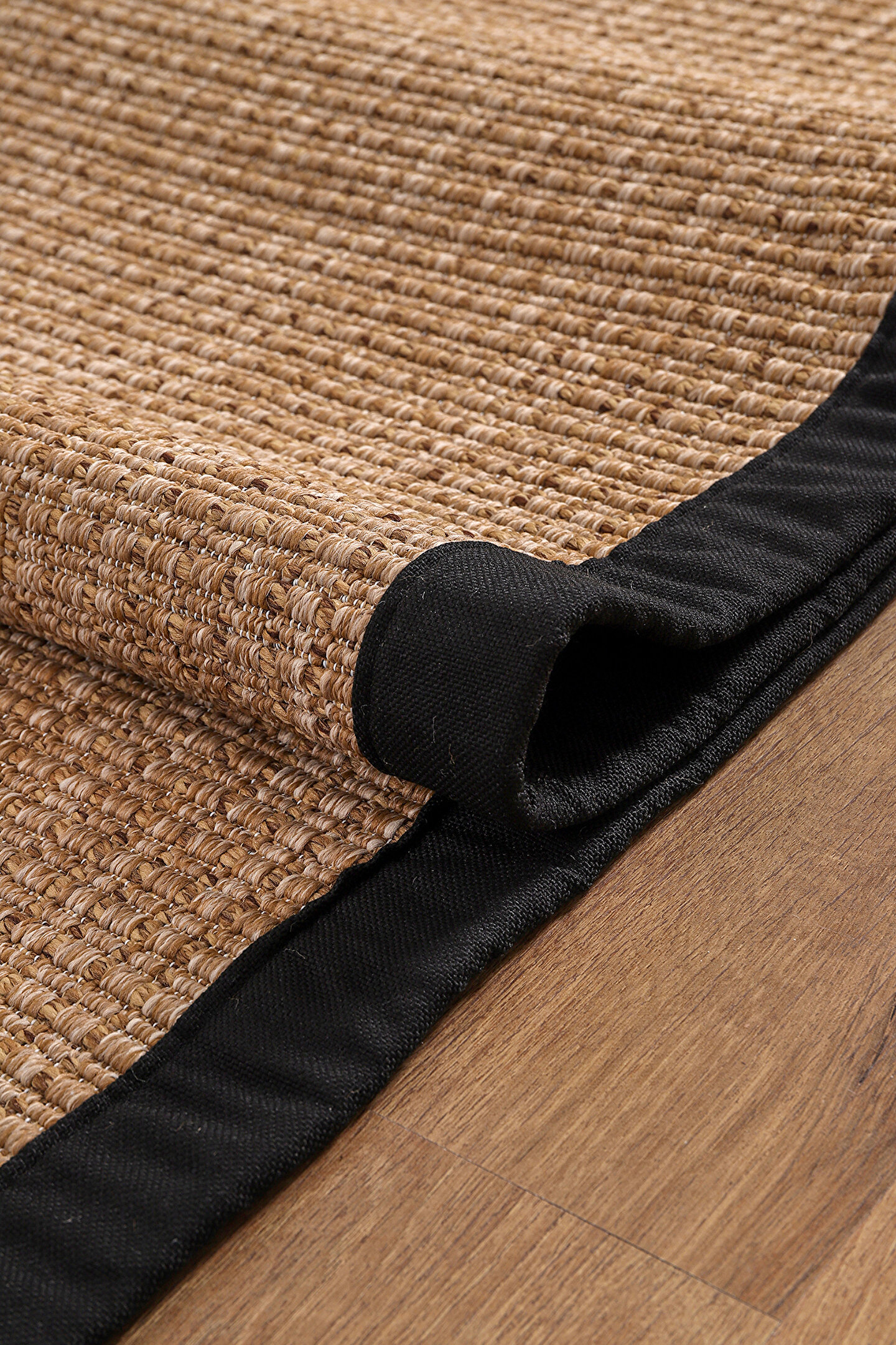 SARAZ HALI 0465-Siyah Kumaş Bordür Sisal Jut Halı Kilim Hav Toz Vermez Kolay Temizlenen Hasır Kilim