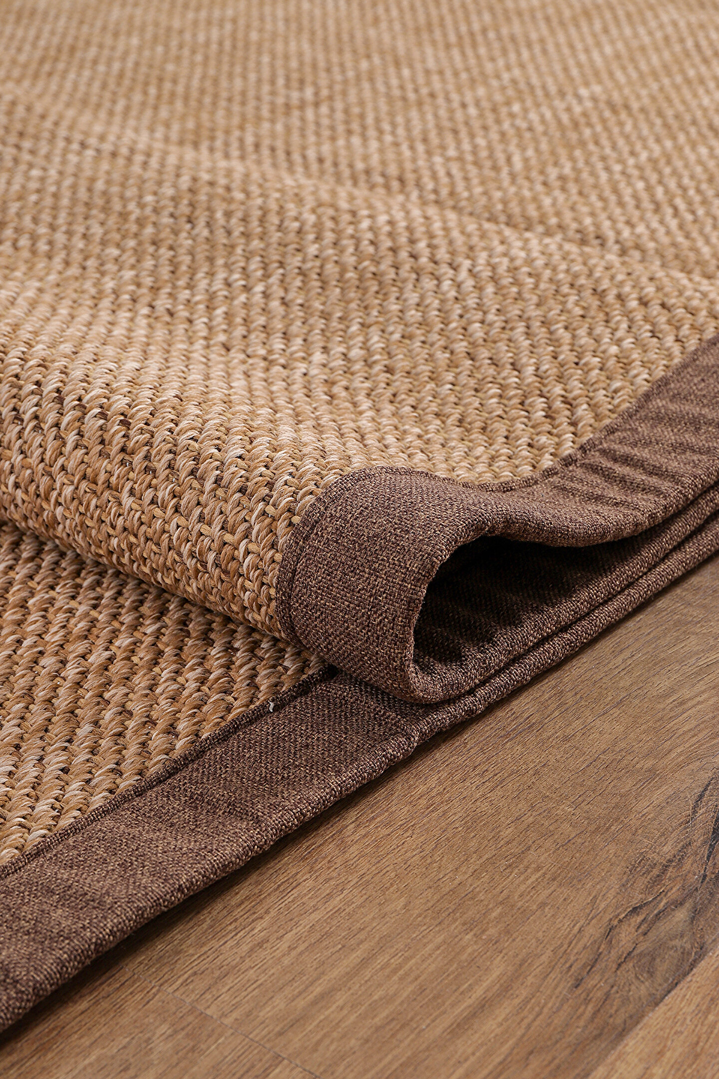 SARAZ HALI 0604-Kahve Kumaş Bordür Sisal Jut Halı Kilim Hav Toz Vermez Kolay Temizlenen Hasır Kilim