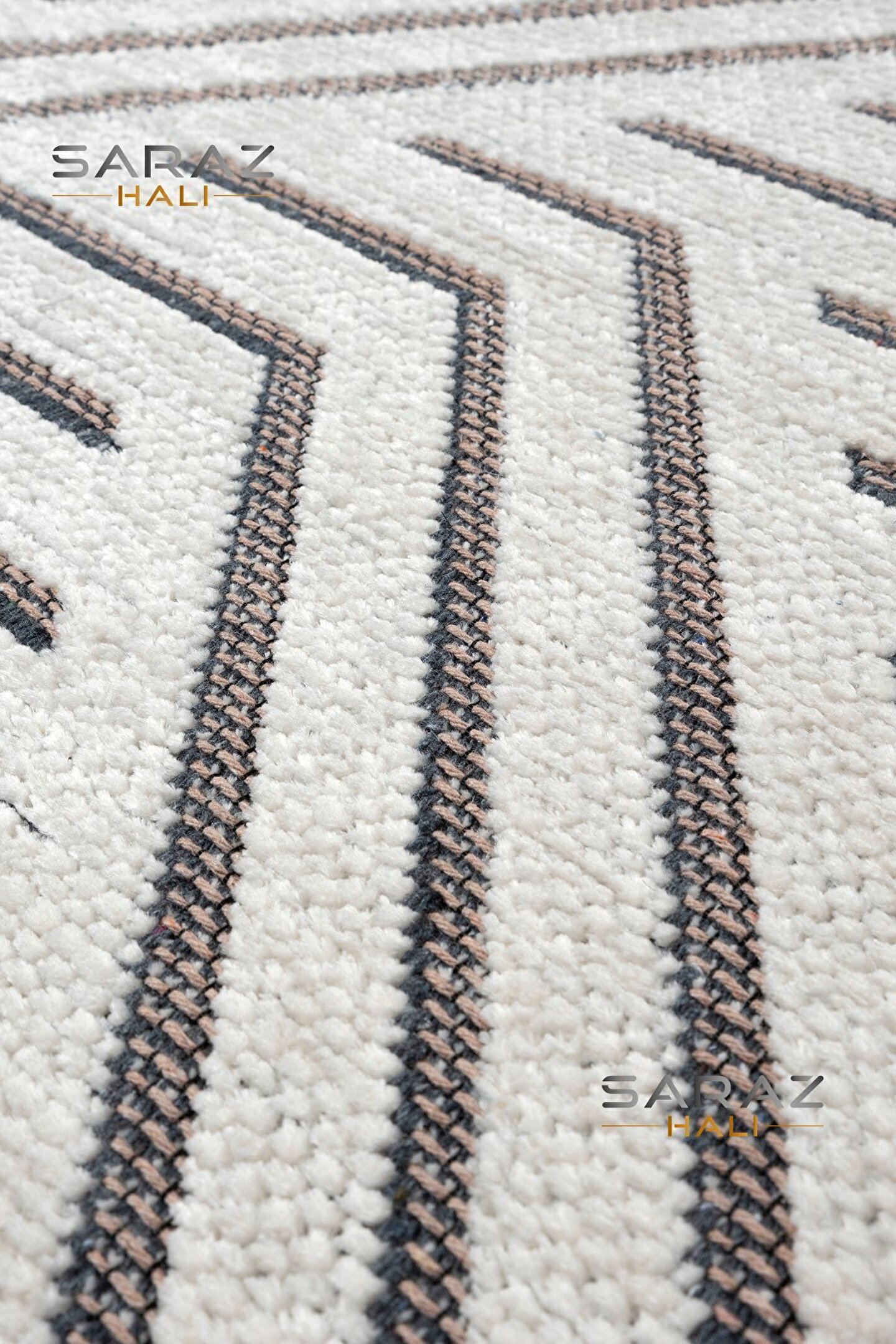SARAZ HALI Ada Kilim Modern Salon Mutfak Koridor Kesme Yolluk Dokuma Makine Halısı zigzag krem