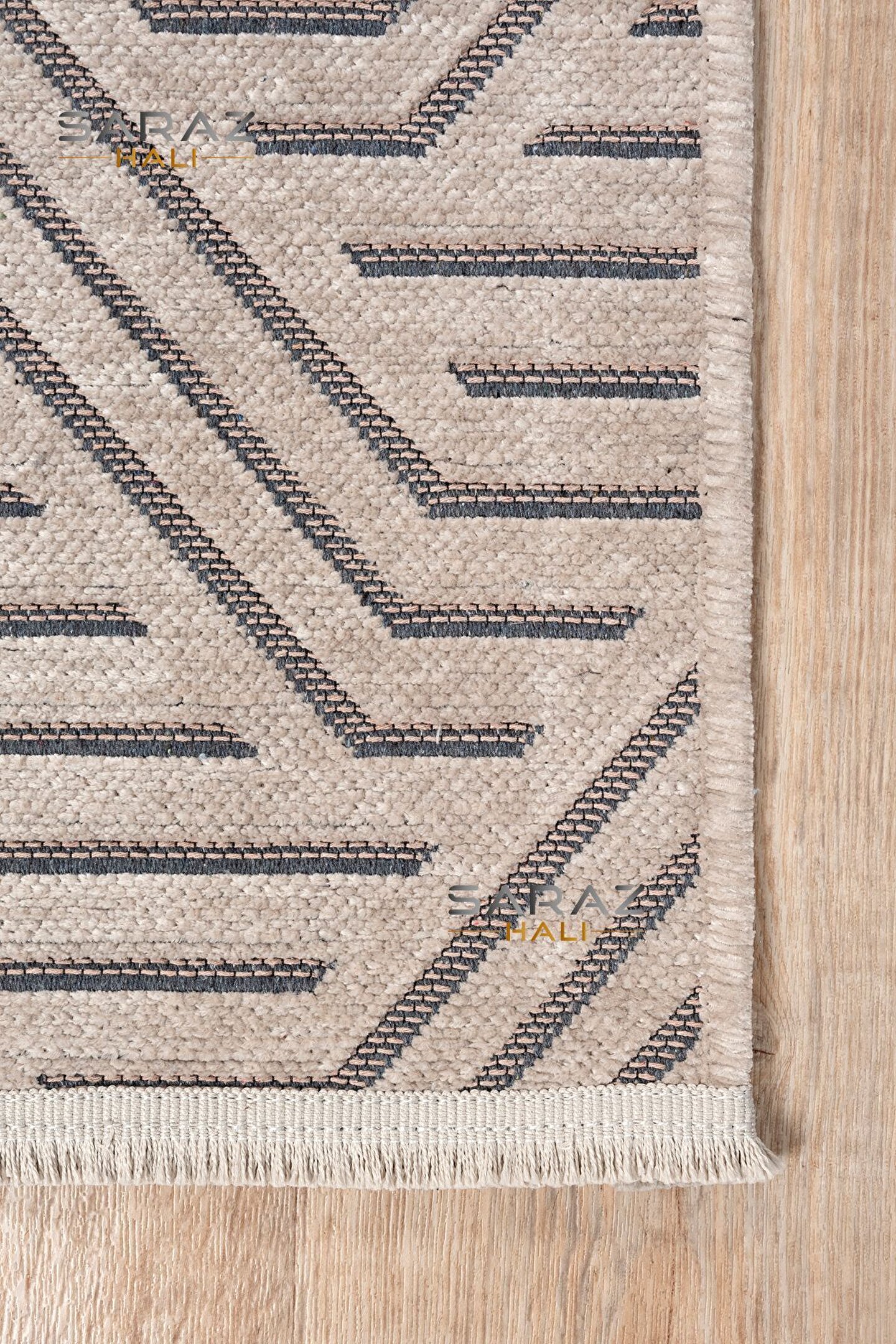 SARAZ HALI Ada Kilim Modern Salon Mutfak Koridor Kesme Yolluk Dokuma Makine Halısı zigzag krem
