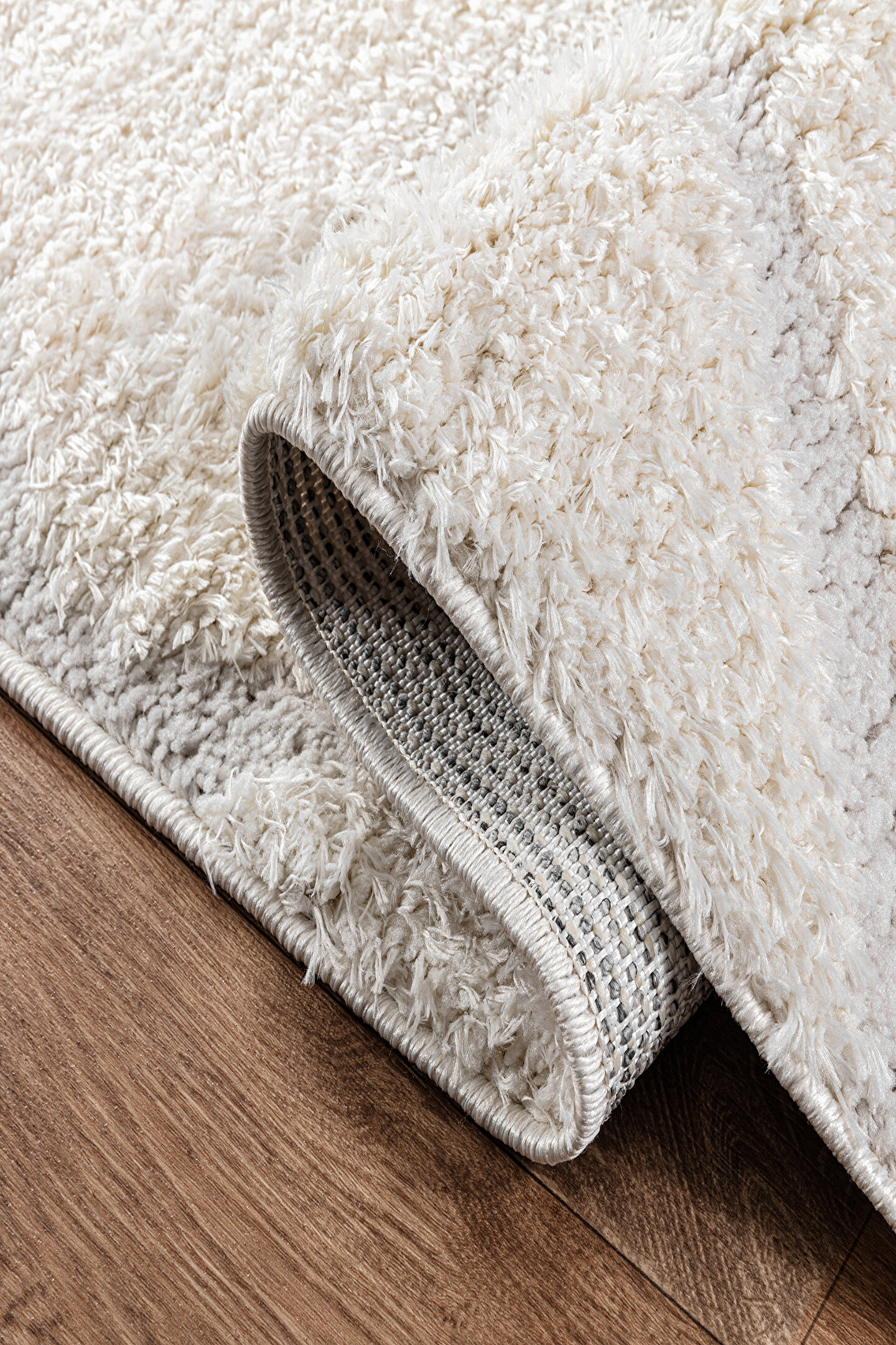 SARAZ HALI B109 Beyaz Kolay Kullanım Hav Toz Vermez Yumuşak Dokulu Uzun Tüylü Modern Shaggy Halı
