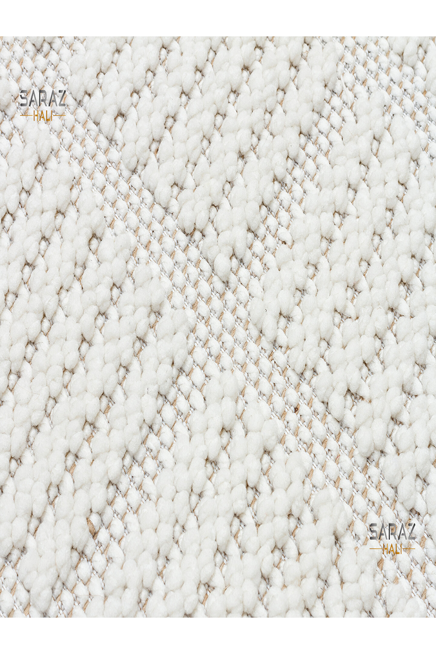 SARAZ HALI Bukle Beyaz Yumuşak Dokulu Halı Kilim Salon Mutfak Koridor Kesme Yolluk Dokuma Makine Halısı 11880