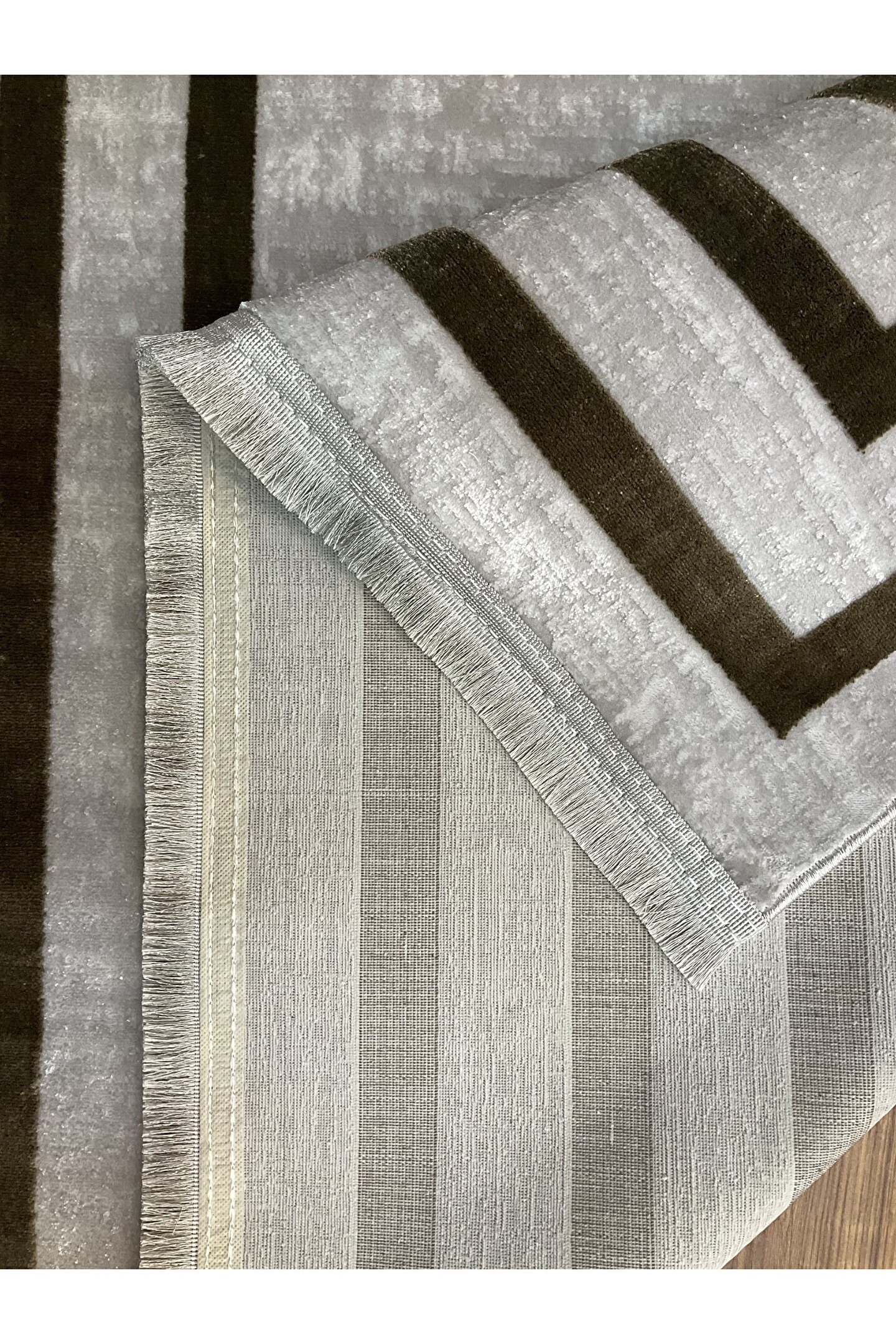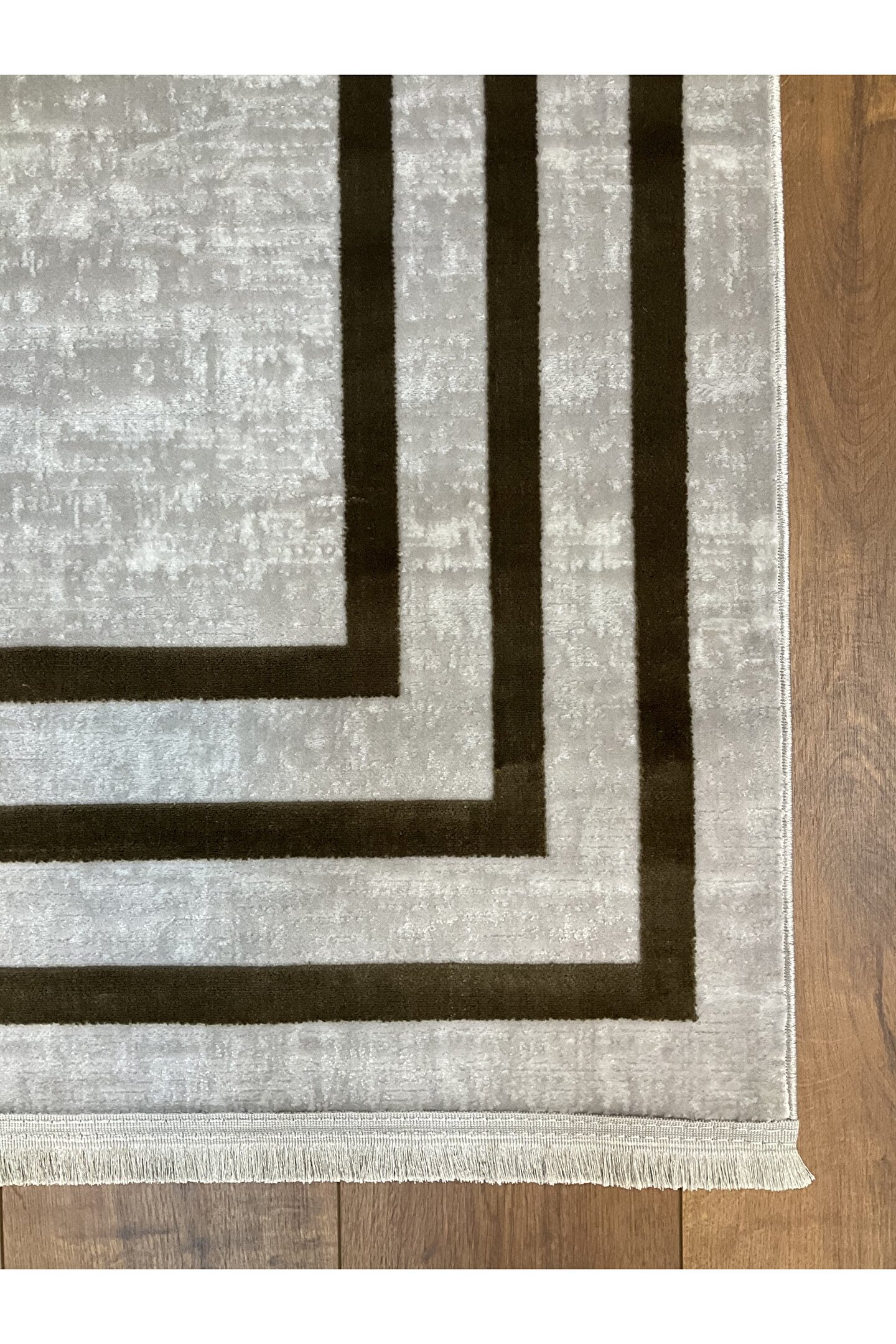SARAZ HALI Çerçeve Model Bambu Yıkanabilir Parlak Halı Kahve Çizgi
