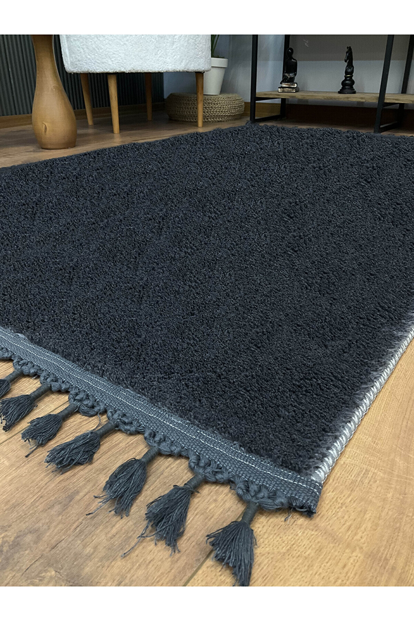 SARAZ HALI Ekstra Puffy Peluş Ultra Yumuşak Yıkanabilir Antrasit