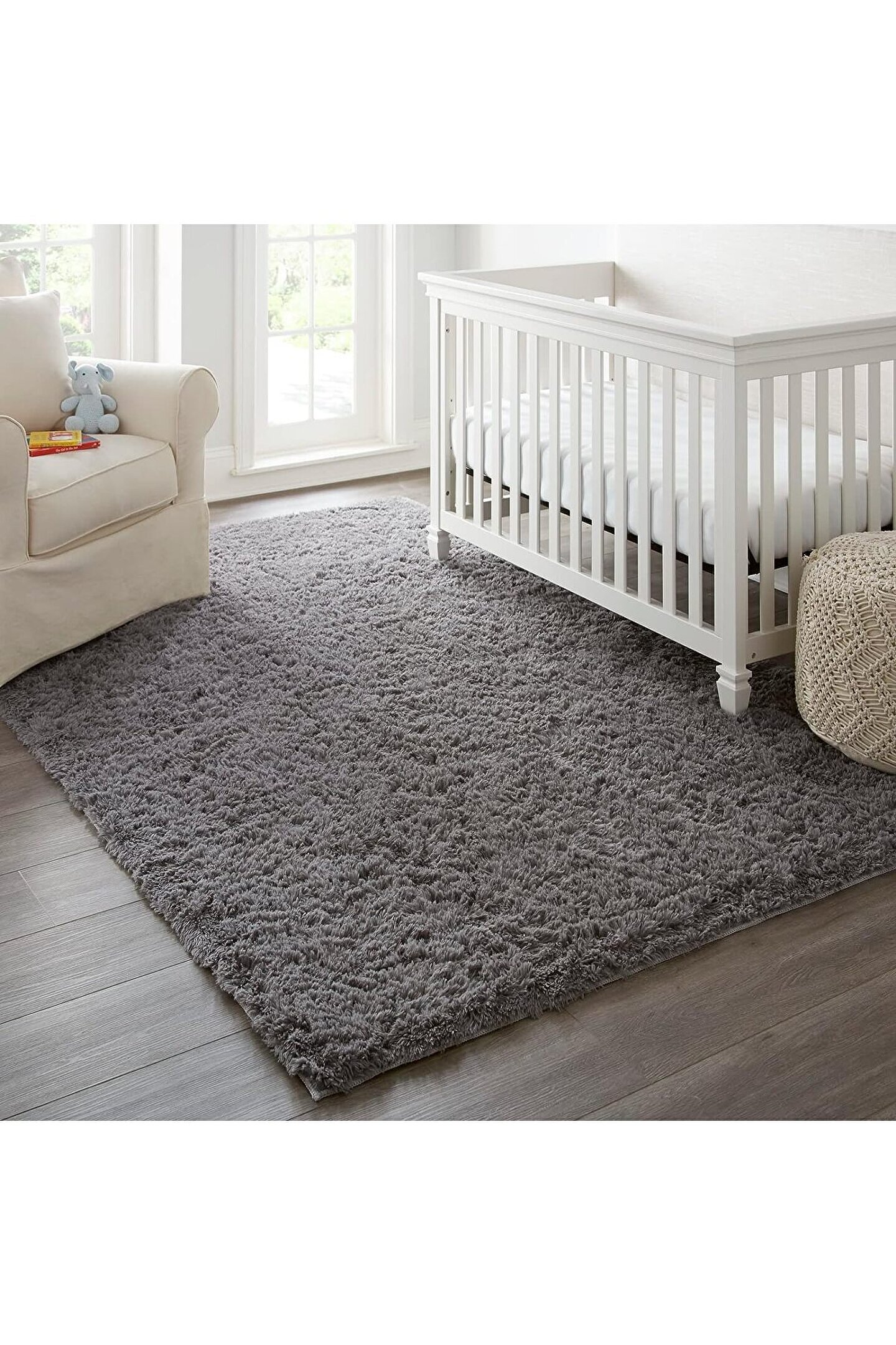 SARAZ HALI Gri Yıkanabilir Yolluk Kaymaz Taban Uzun Tüylü Yumuşak Halı Kaymaz Tüylenmez