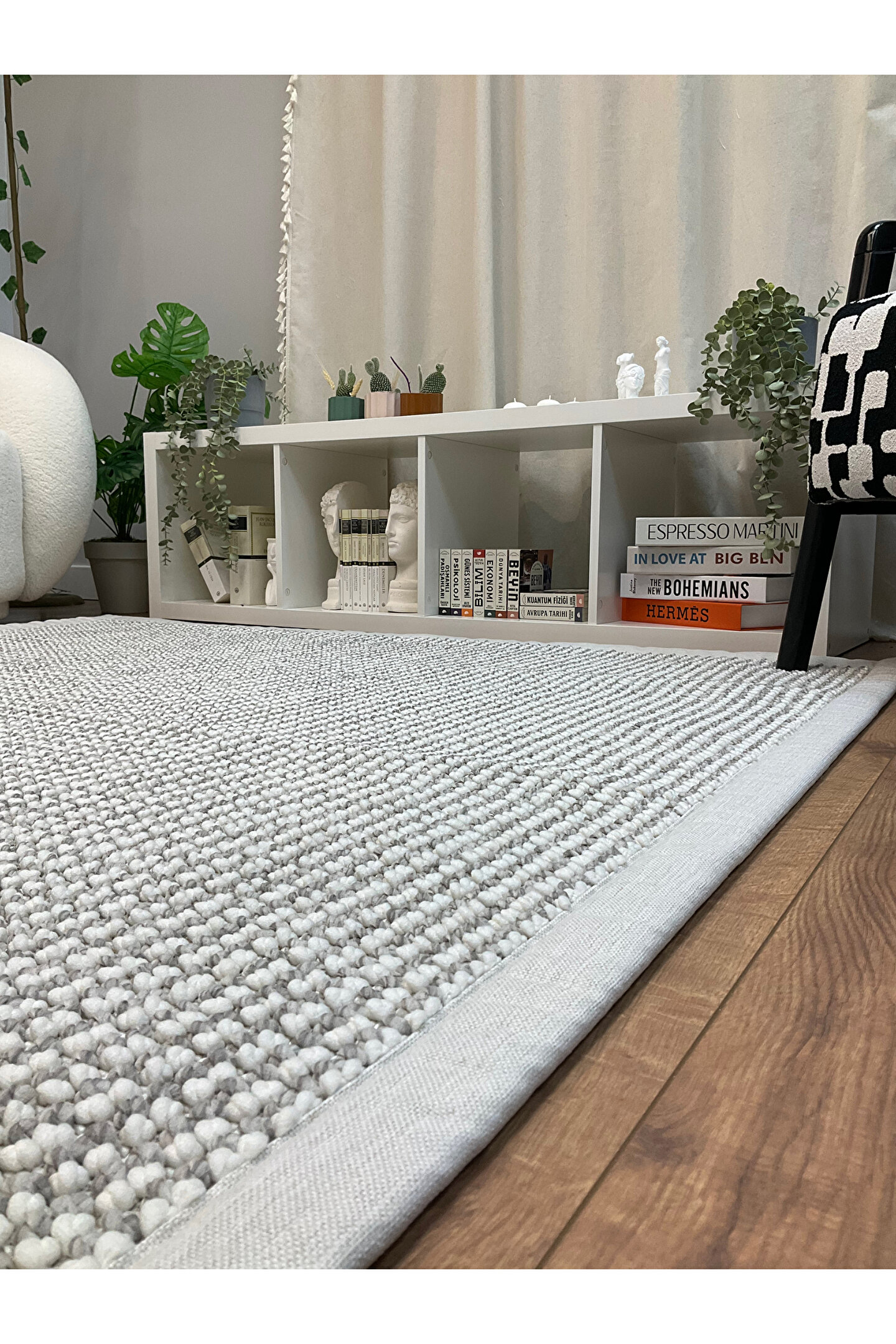 "Gerçek DOKUMA halısıdır ve Gerçek Kumaş Bordür Mevcuttur Hav, tüy çıkartmaz.; Toz yapmaz.; Deformasyona uğramaz.; Keçeleşmez Ekstra yumuşak 1.sınıf polyester ipliklerle dokunan bu halımız, basıldığında yumuşaklık hissi verir ve ayakaltı konforunuzu sağlar.; Bukle örgü sistemiyle dokunan bu halımız, doğal 3 boyutlu görünüm de sağlamaktadır.; Ürünümüzün kenarlarında yer alan kumaş bordür detayı, halınıza hem şık bir görünüm hem de ekstra dayanıklılık kazandırır.; Kullanım ve Bakım Talimatı Temizliği çok kolaydır.; Robot süpürge kullanımına uygundur.; Elektrik süpürgesi ile de kolayca süpürülebilir.; Rutin temizlik dışında herhangi bir lekelenme ya da sıvısal kirlenmeler için halı leke çıkartıcısı kullanınız.; Çamaşır makinesinde yıkanmaz.; Sert yüzey temizleyicileri, çamaşır suyu, tuz ruhu gibi maddelerden uzak tutulmalıdır, bu tür maddeler halı dokusuna zarar verip çürümeye neden olur.; Çok fazla kirletildiği zaman, profesyonel temizleme şirketlerine başvuru yapınız.; Yüksek basınçlı (tazyikli) su ile yıkanmamasını rica etmekteyiz.; Ekstra yumuşak bir halı olduğu için, bu hâliyle senelerce kullanmanızı dilemekteyiz.; Halınızın kullanılmadığı zamanda, katlamadan, rulo halinde rutubetin olmadığı bir yerde muhafaza etmenizi öneririz.; Evinize Uygun Halı Seçenekleri: Salon Halısından Yatak Odası Halısına Evinizin dekorasyonunu tamamlayan en önemli unsurlardan biri halıdır.; Doğru halı seçimi, mekanın atmosferini ve konforunu büyük ölçüde etkiler.; Bu yazıda, salon halısı, peluş halı, yuvarlak halı, İskandinav halı, yatak odası halısı gibi farklı seçenekleri ve trend halıları inceleyeceğiz.; Salon Halısı Seçimi: Salon, evin en çok vakit geçirilen alanlarından biridir.; Bu nedenle, salon halısı seçerken hem estetik hem de dayanıklılık önemlidir.; Modern halılar arasında gri halı, krem halı ve bej halı gibi nötr tonlar popülerdir.; Ayrıca, yuvarlak halılar ve İskandinav halılar da minimalist dekorasyon sevenler için idealdir.; Yatak Odası Halısı: Yatak odası, dinlenme ve rahatlama alanıdır.; Peluş halılar, yumuşak dokusuyla yatak odası halısı olarak mükemmel bir seçimdir.; Beyaz halı veya bej tonları, odanıza ferahlık katarken, bohem halılar özgün bir tarz yaratmanıza yardımcı olur.; Mutfak ve Koridor Halıları: Mutfak halısı ve koridor halısı seçerken, kolay temizlenebilir ve dayanıklı malzemeler tercih edilmelidir.; Jut halı ve sisal halı, doğal lifleri sayesinde hem şık hem de pratiktir.; Kesme halılar ise dar alanlara özel ölçülerde uyum sağlar.; Çocuk Odası Halıları: Çocuk odası halısı seçerken, renkli ve eğlenceli desenlerin yanı sıra, hijyenik ve yıkanabilir özellikte olması önemlidir.; Dokuma halılar, dayanıklılıklarıyla çocuk odaları için idealdir.; Trend ve Modern Halılar: Son dönemde, halı kilim kombinasyonları ve oturma odası halısı olarak kullanılan farklı dokular popülerlik kazanmıştır.; Hol halısı ve diğer alanlar için modern halılar seçerken, mevcut dekorasyon stilinizi ve renk paletinizi göz önünde bulundurmanız önerilir.; "
