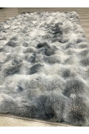 SARAZ HALI Renkli Bubble Tavşan Tüyü İthal Kaymaz Yumuşak Tüylü Tona Ton Gri