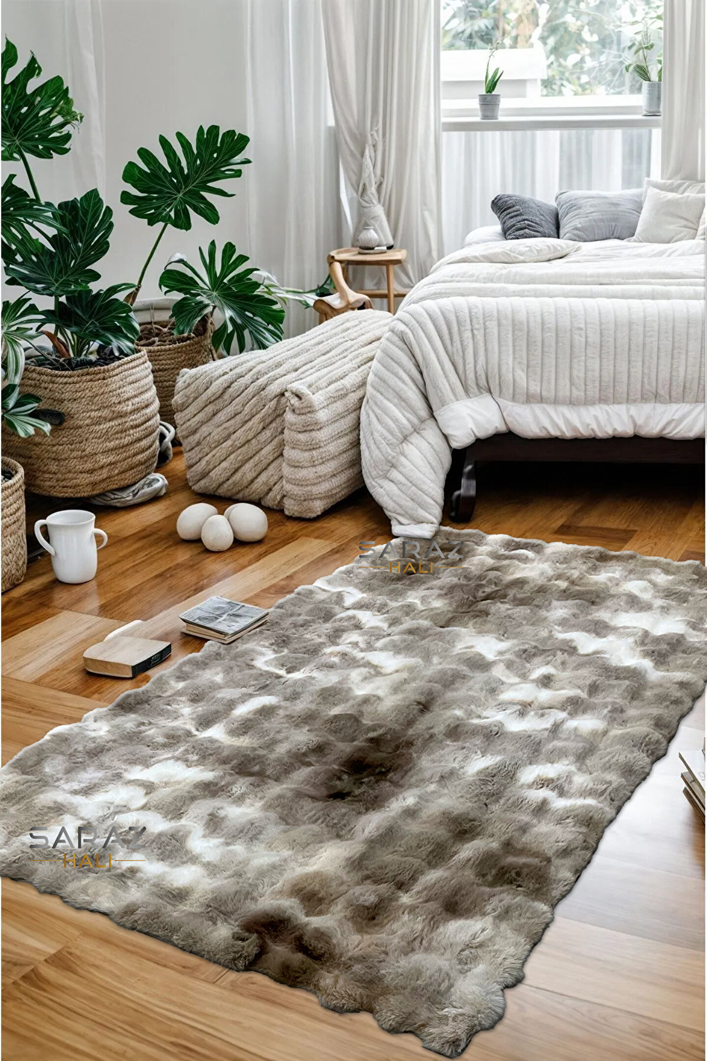 SARAZ HALI Renkli Bubble Tavşan Tüyü İthal Kaymaz Yumuşak Tüylü Tona Ton Kahverengi