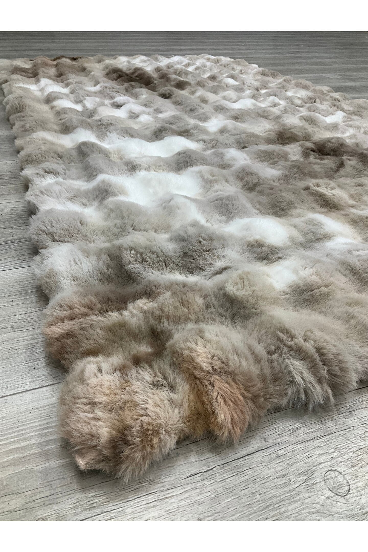 SARAZ HALI Renkli Bubble Tavşan Tüyü İthal Kaymaz Yumuşak Tüylü Tona Ton Kahverengi