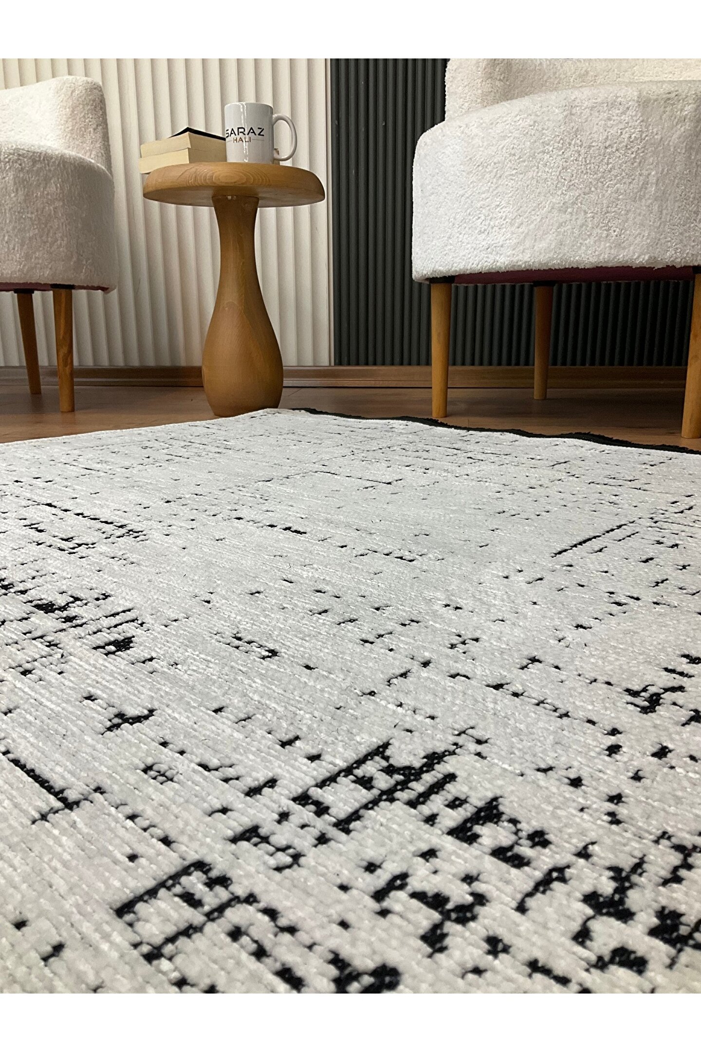 SARAZ HALI Şönil Dokuma Kayma Yapmaz Makinede Yıkanabilir Leke Tutmaz Kesme Bohem Kilim Krem 2