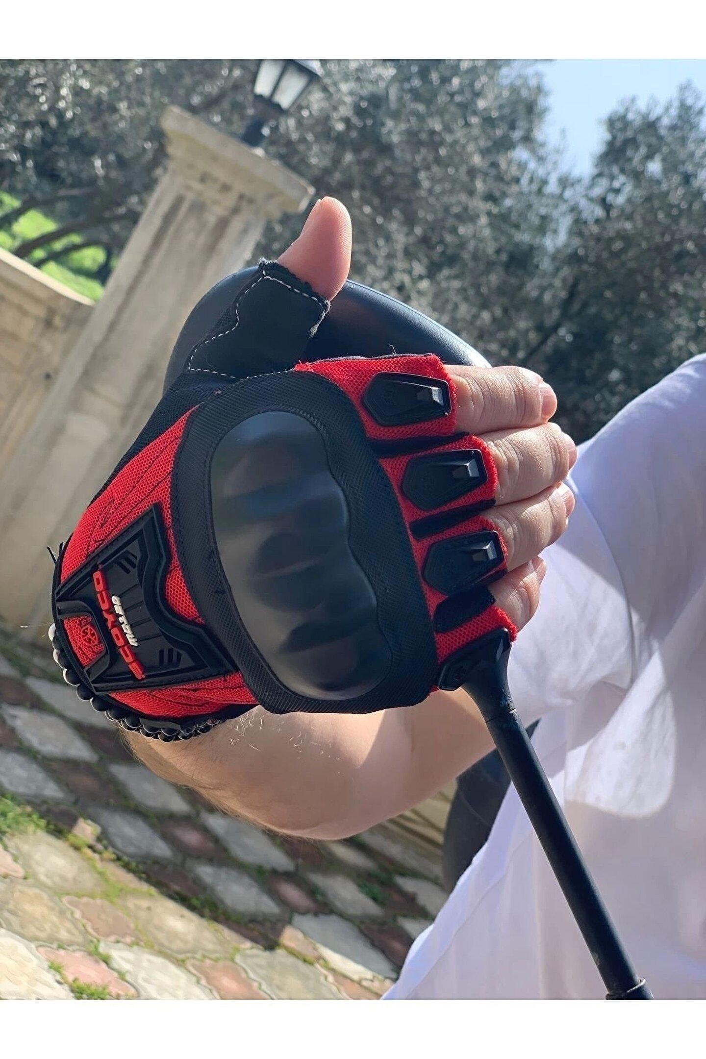 Fnm--mc12d- Full Üst Korumalı Yazlık Mevsimlik Yarım Eldiven Kırmızı