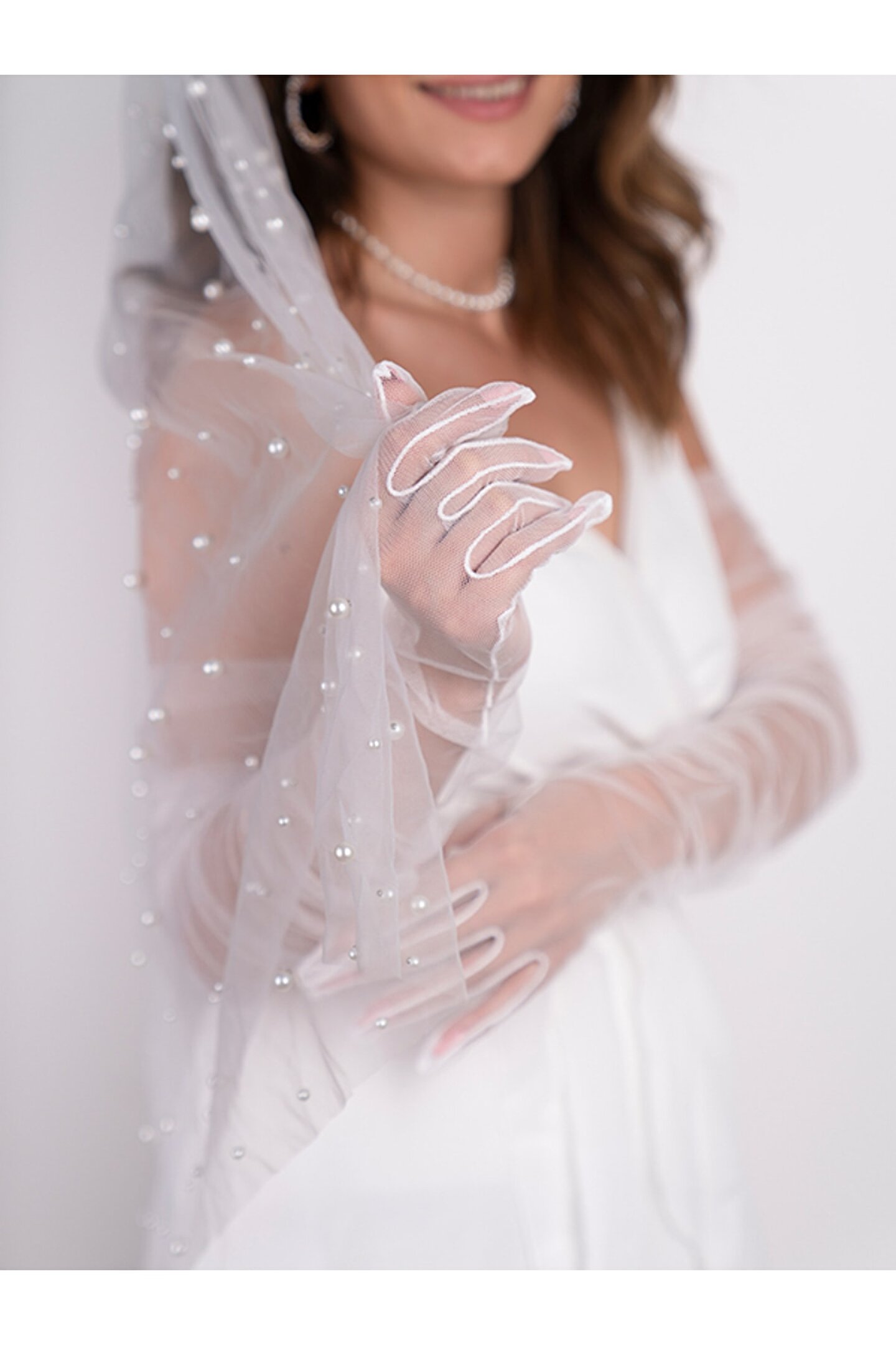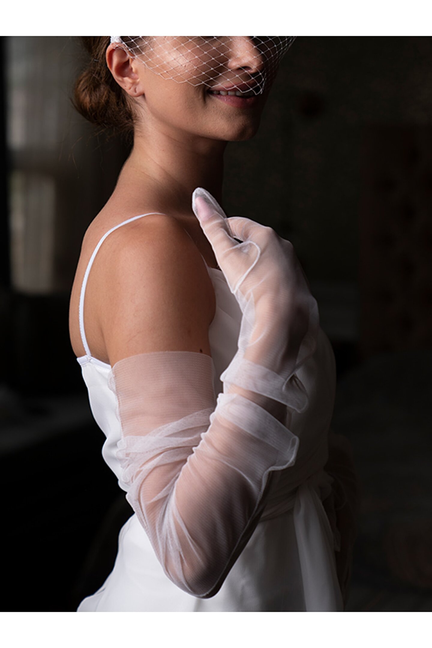 Gençlerin zarif ve şık görünümünü tamamlayan uzun beyaz tül gelinlik eldiveni, özel günlerdeki şıklığınızı artırır; Zarif tül detayları ile süslenmiş bu eldivenler, gelinliklerinize romantik bir dokunuş katarken, gençlerin tarzını yansıtır; Her yaş grubuna hitap eden bu eldivenler, gençlerin düğün hazırlıklarında vazgeçilmez bir aksesuar olarak öne çıkar;