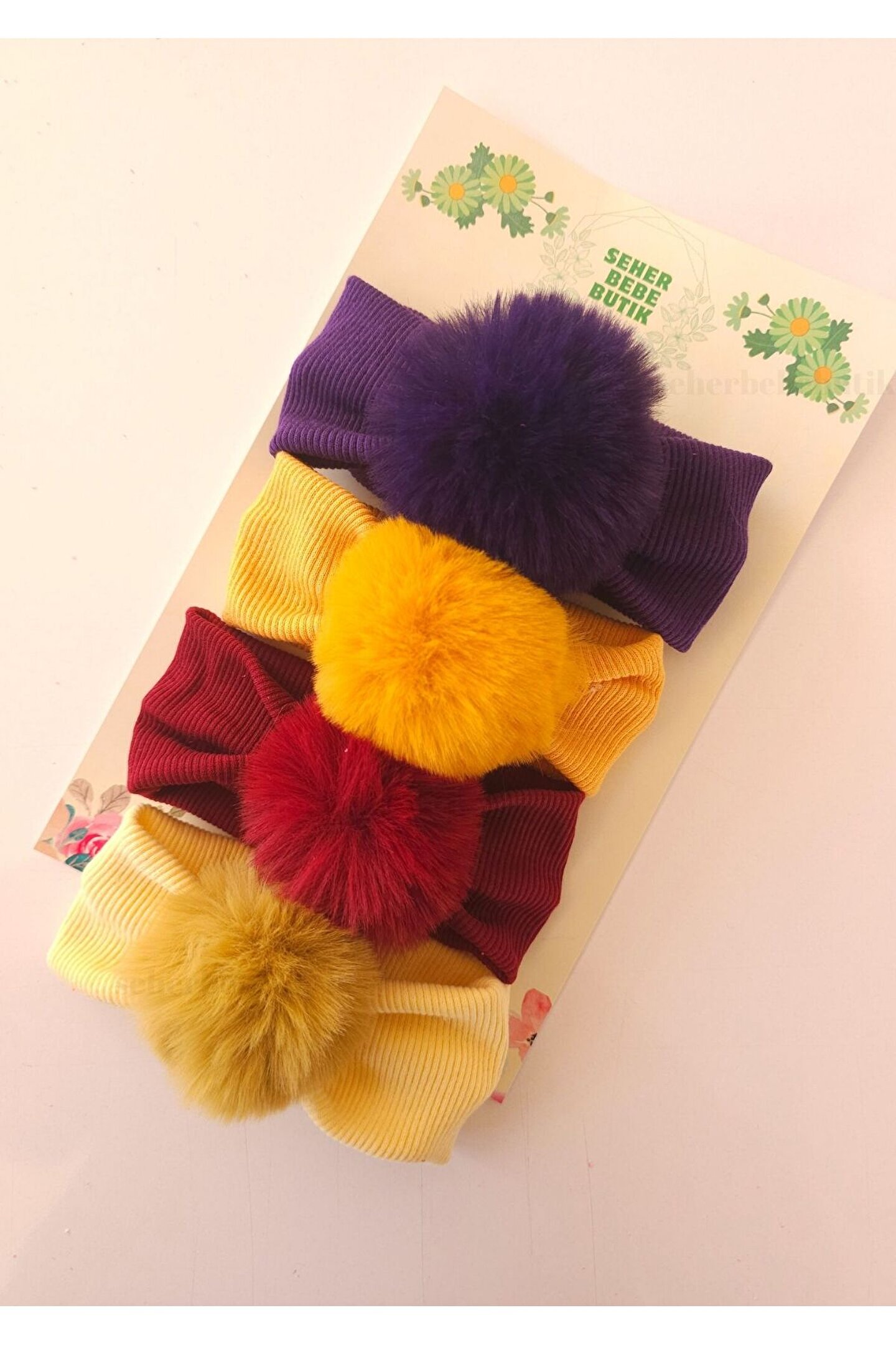 Kız Bebek & Çocuk PonPon Bandana Set - Peluş-Yumuşak-Esnek