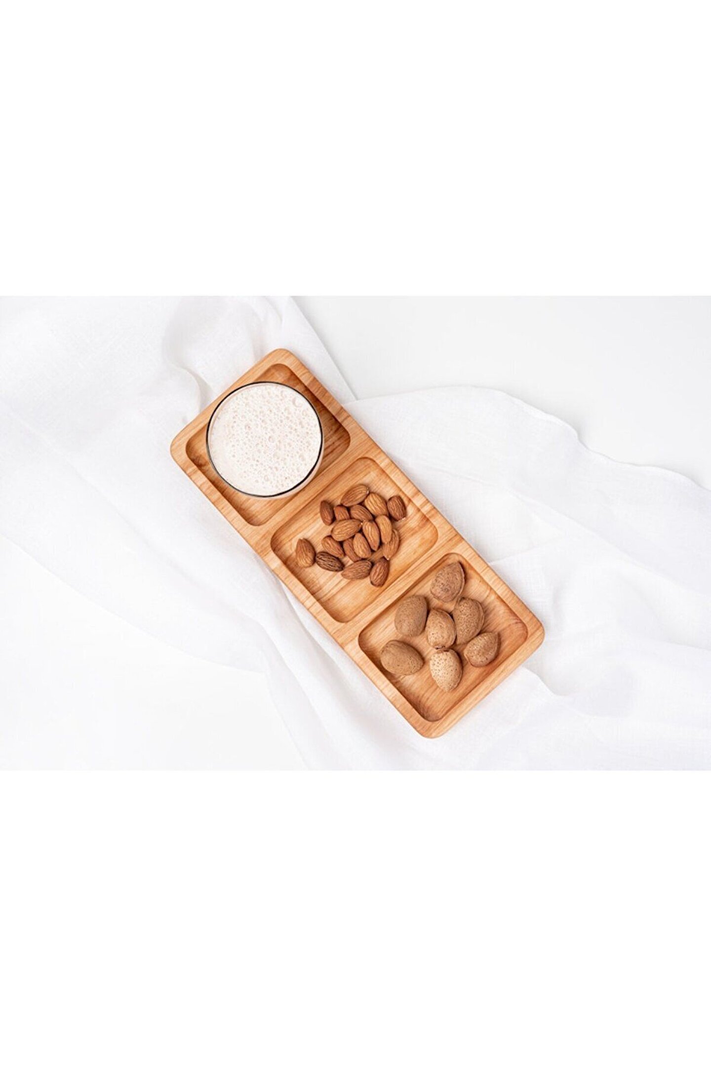 3 Bölmeli Küçük Ahşap Servis Tepsisi