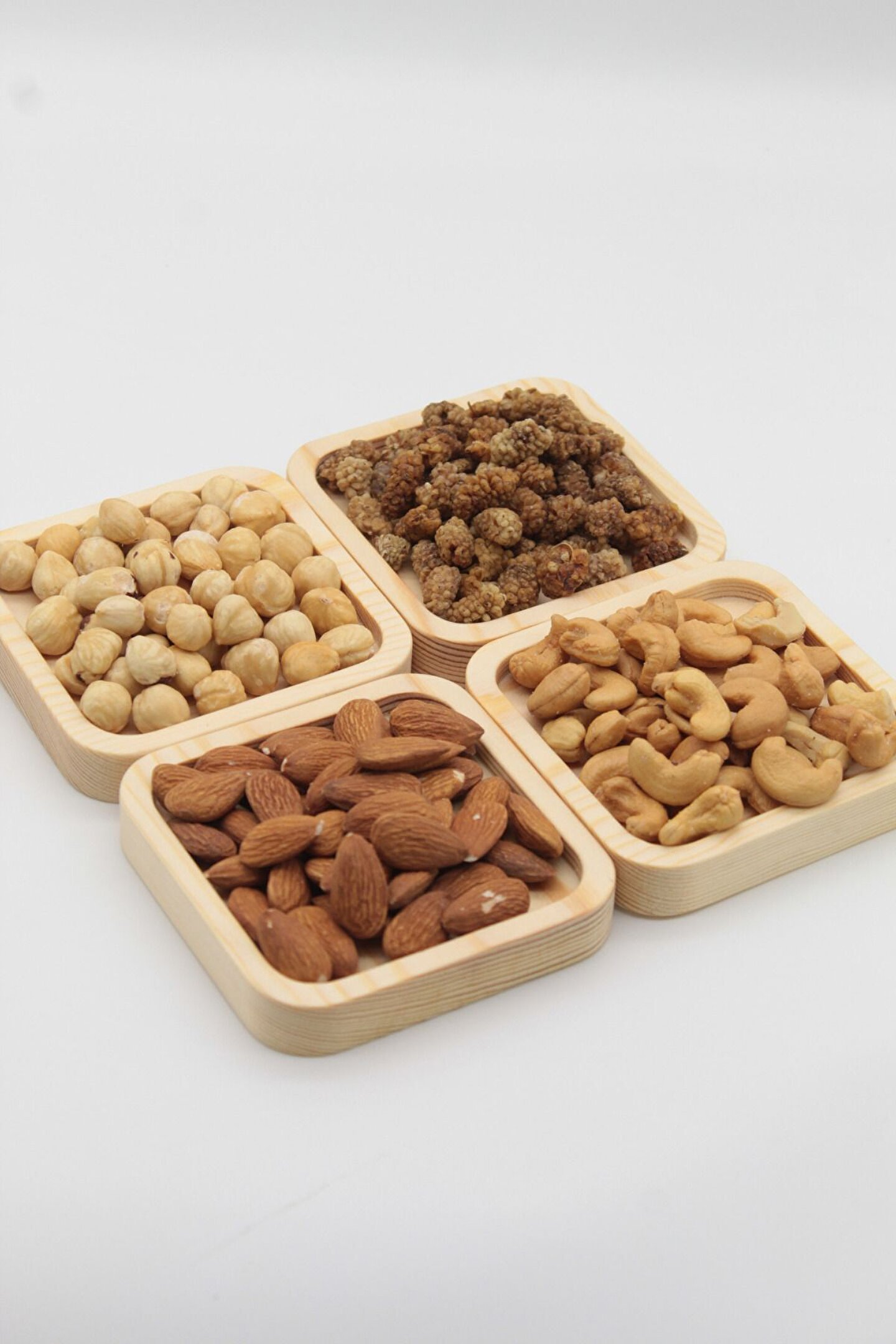 4 Lü Ahşap Çerezlik Çay Tabağı Kahve Tabağı Sunumluk Anahtarlık Takılık Para Kutusu