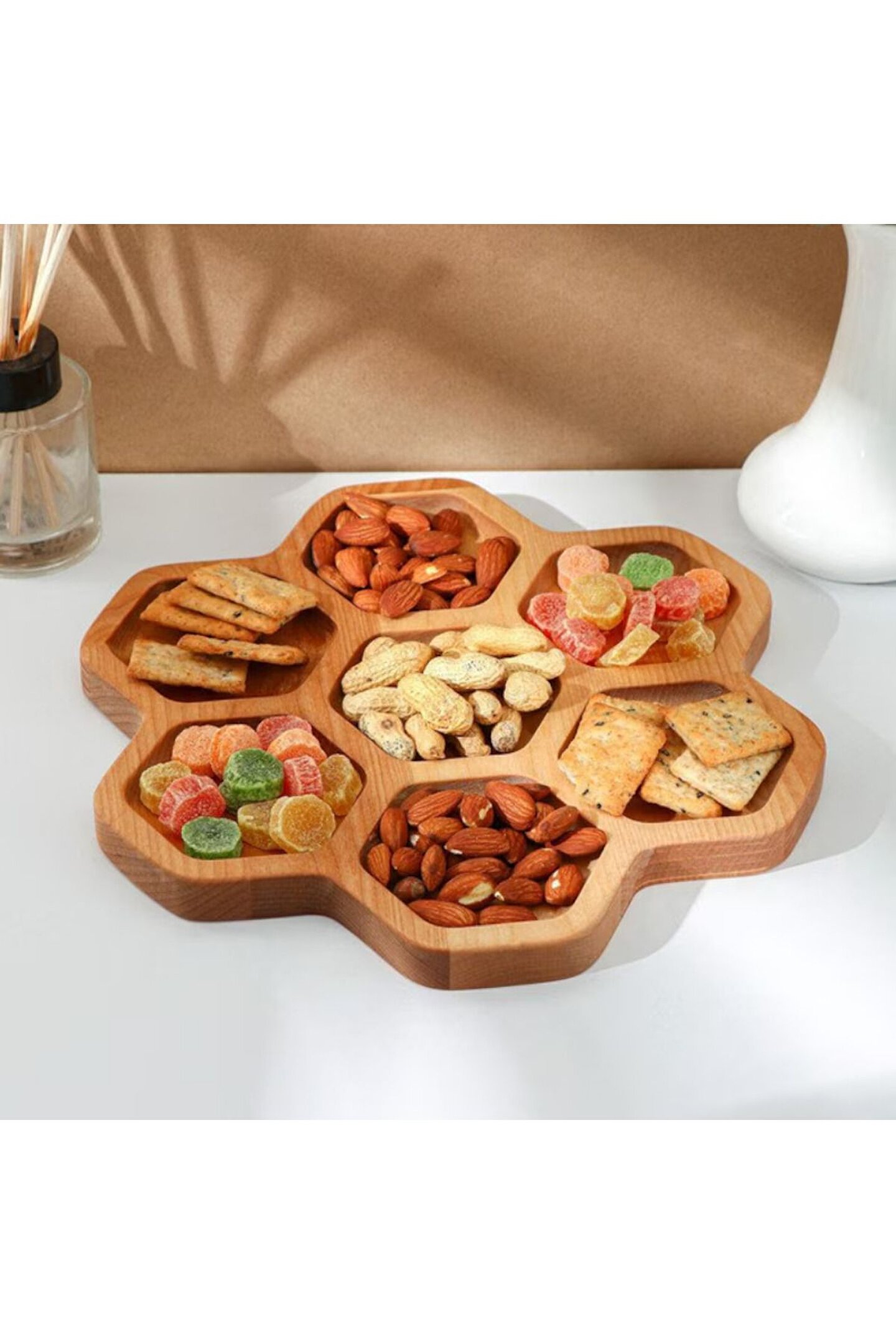 Ahşap Altıgen Tepsi Sunumluk Bardak Altlığı Sunum Tabağı
