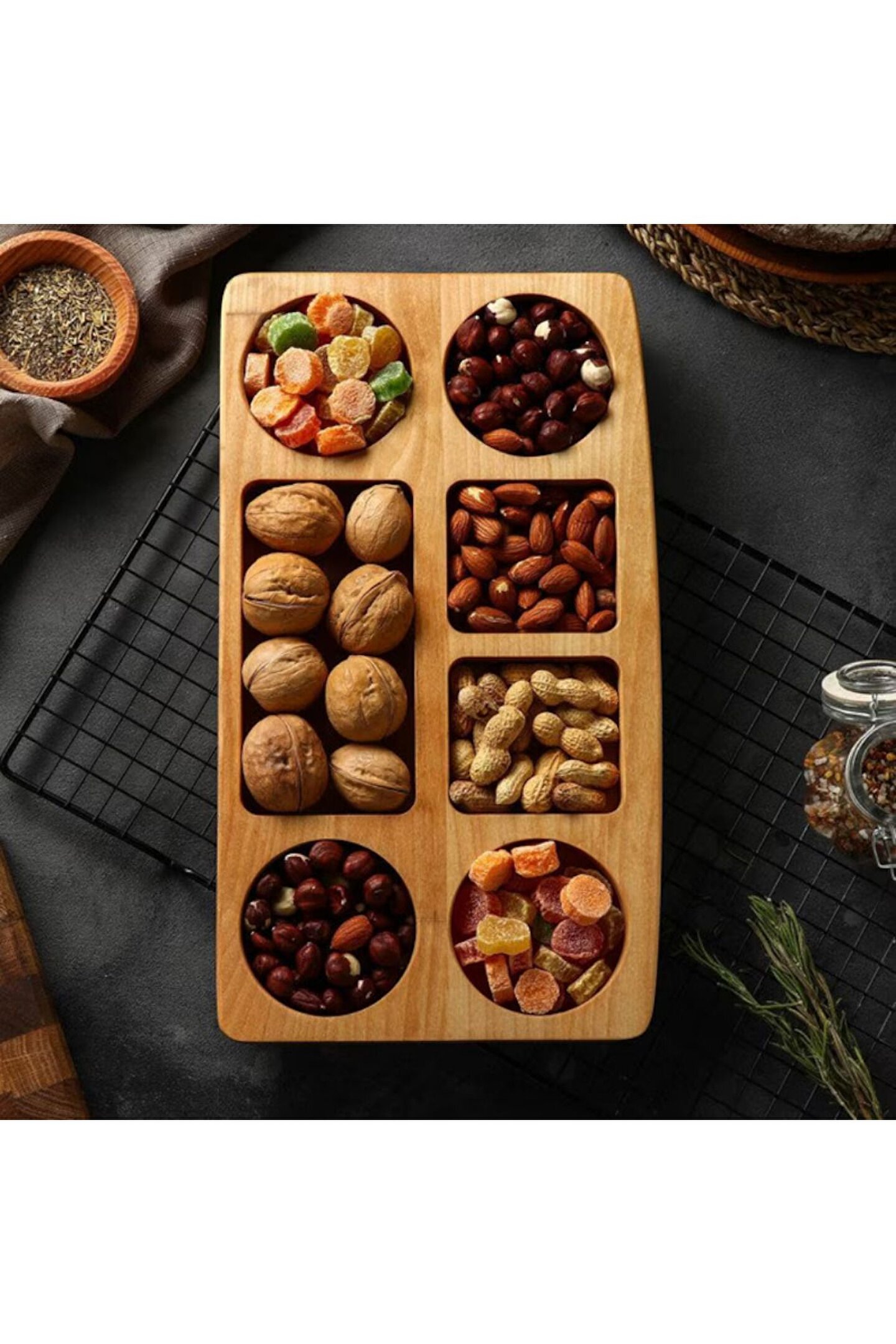 Ahşap Çok Gözlü Tepsi Sunumluk Çerezlik