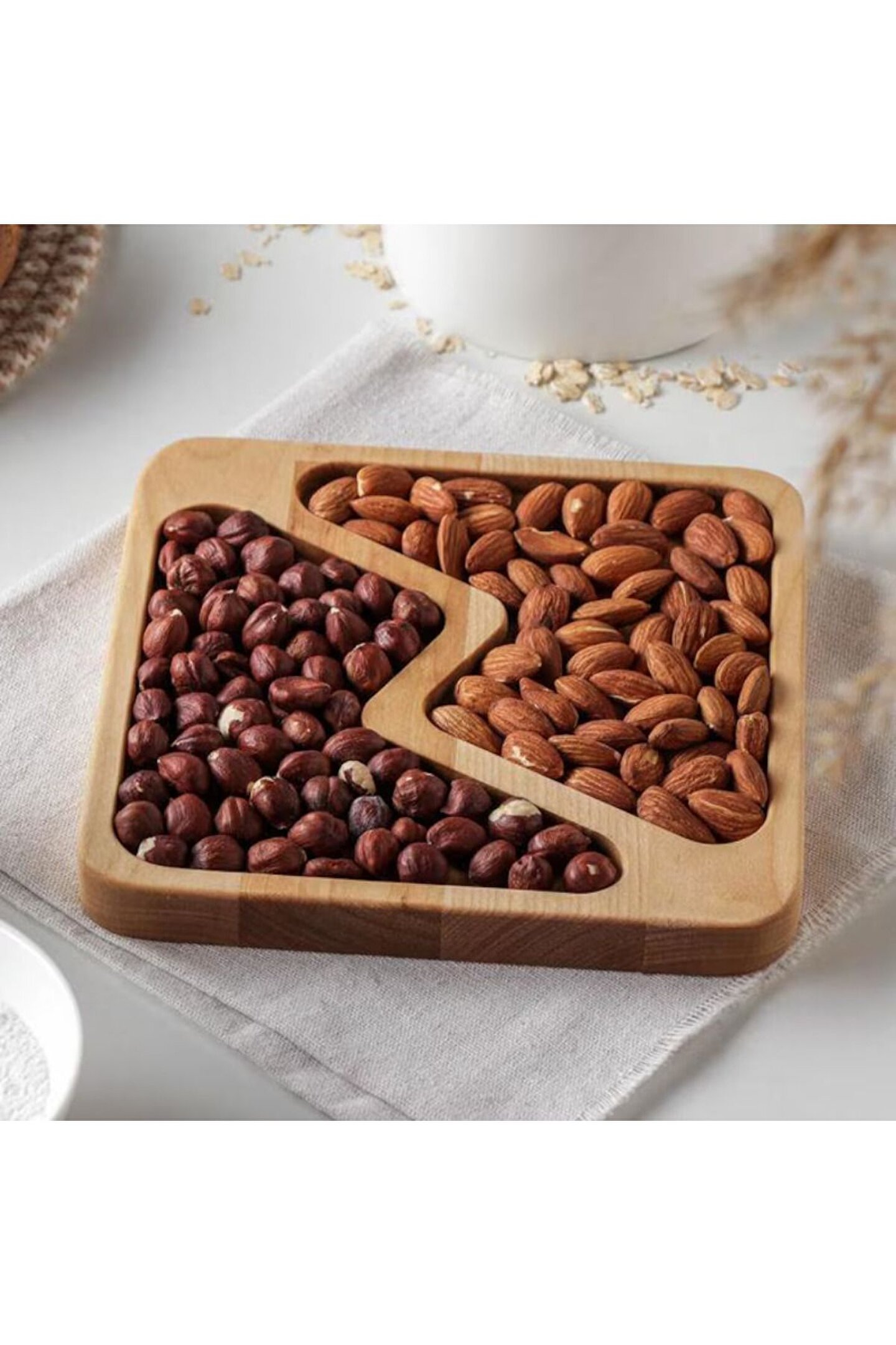 Ahşap Kare 2 Bölmeli Tepsi Sunumluk