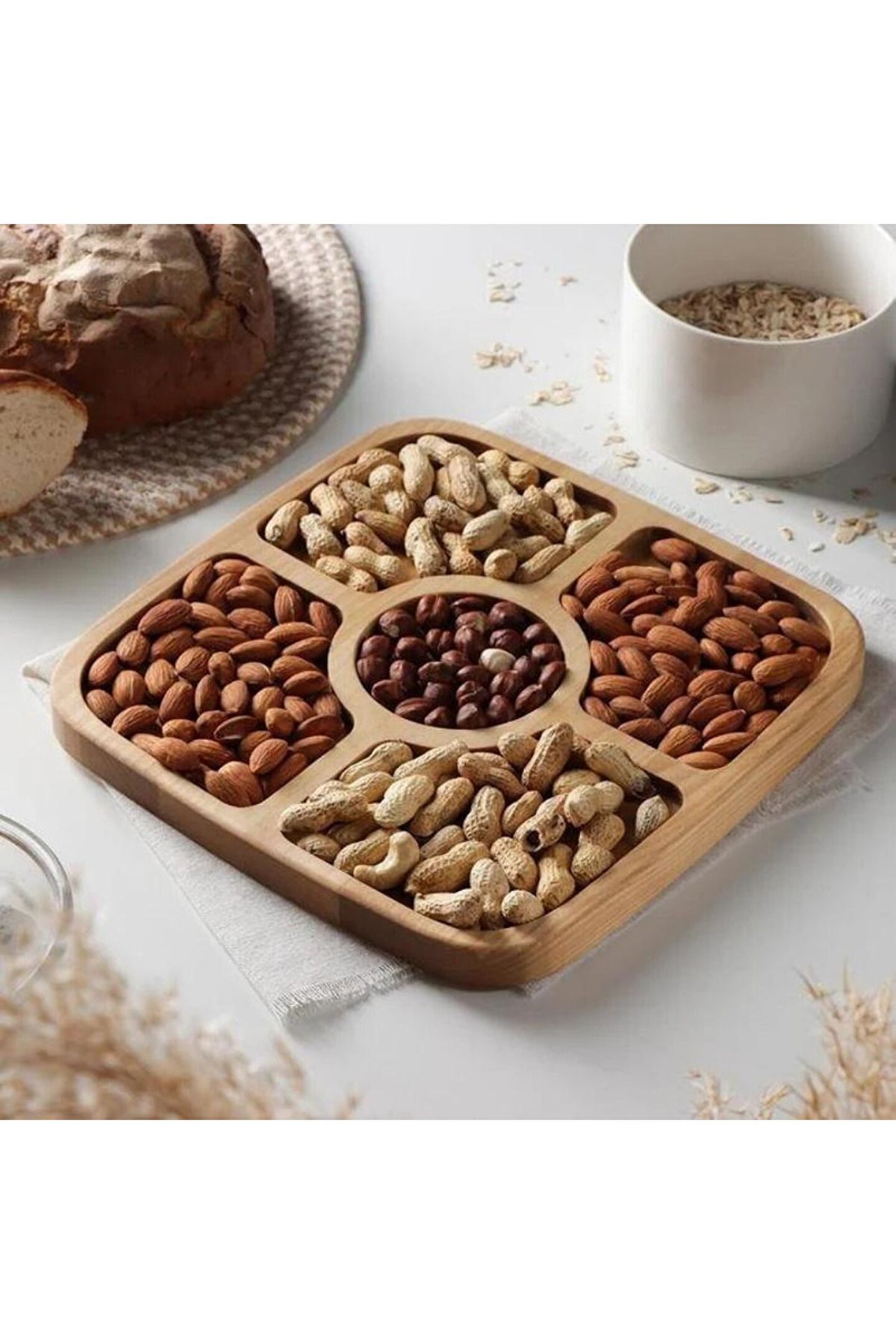 Ahşap Kare 5 Bölmeli Tepsi Sunumluk Çerezlik