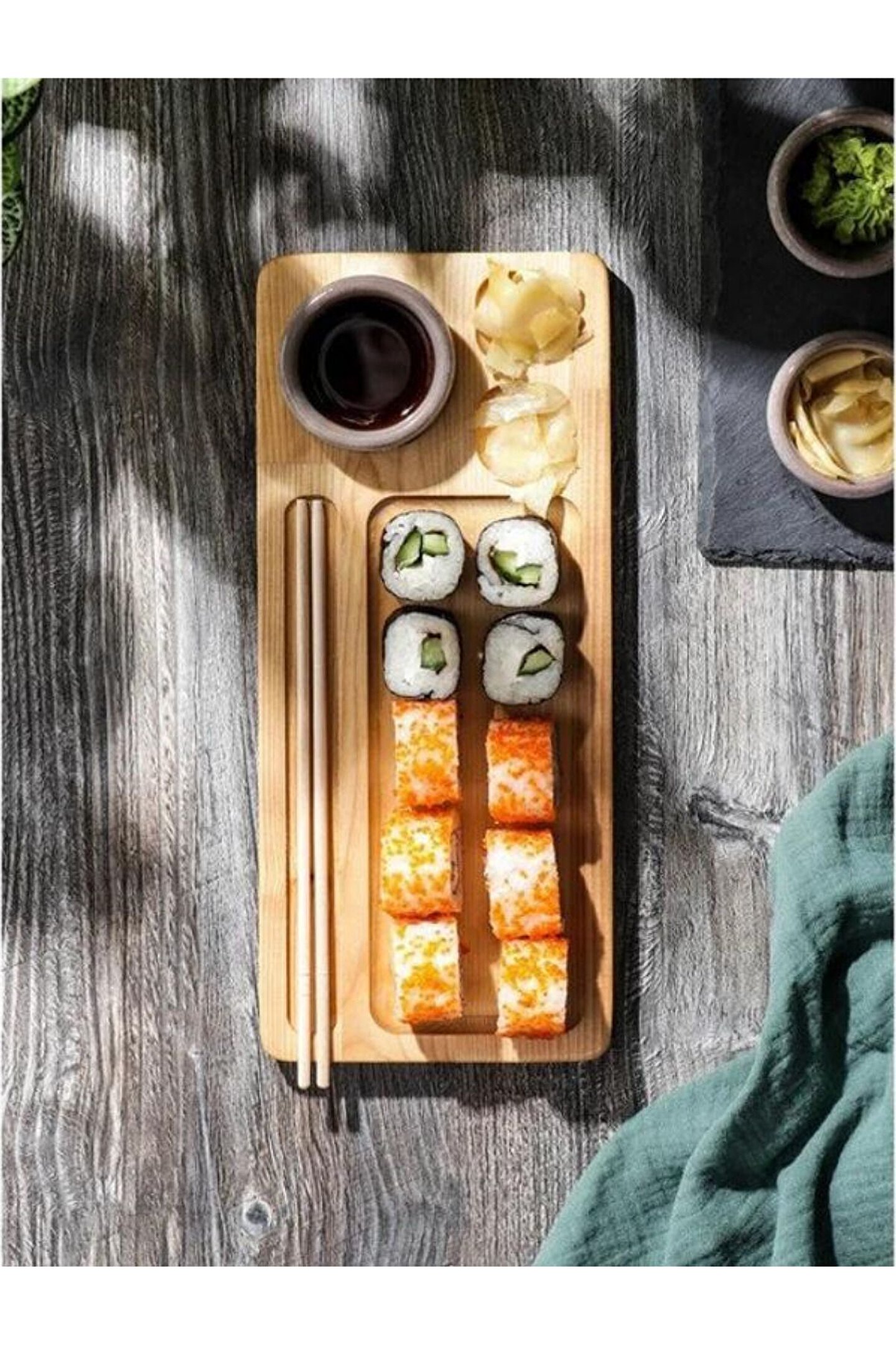 Ahşap Suşi Tabağı Sunum Tabağı 5 Göz