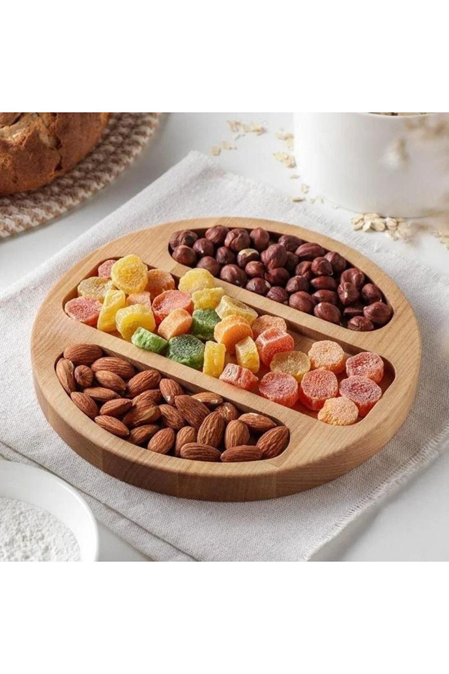 Ahşap Yuvarlak 3 bölmeli Tepsi Sunumluk