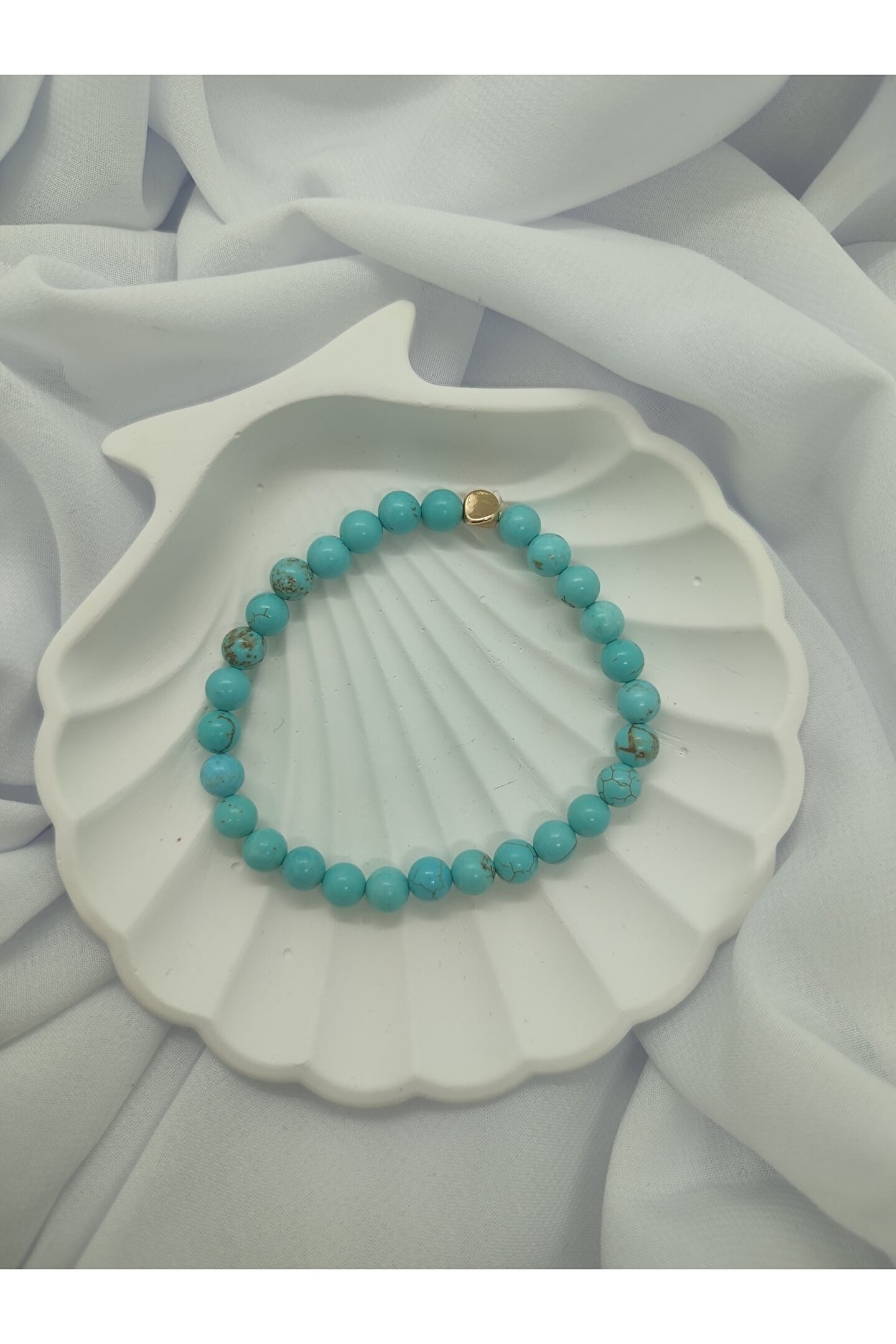 - Doğal taş kullanımı sayesinde her bileklik benzersiz ve otantik bir görünüm sunar; - Turkuaz rengi, bilekliğe canlılık ve zarafet katarak günlük kombinlerinizde şıklığınızı tamamlar; - Doğal taş materyali ile hem dayanıklılık hem de estetik bir dokunuş sağlar;