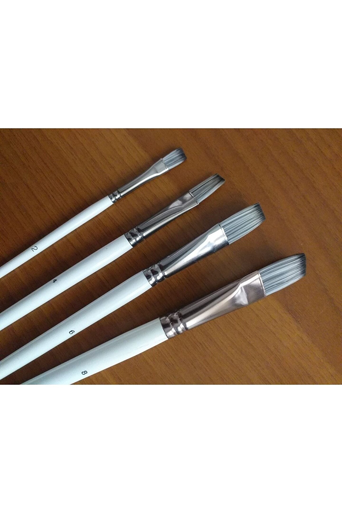 4 Lü Yassı Düz Kesik Yağlıboya Akrilik Fırça Seti