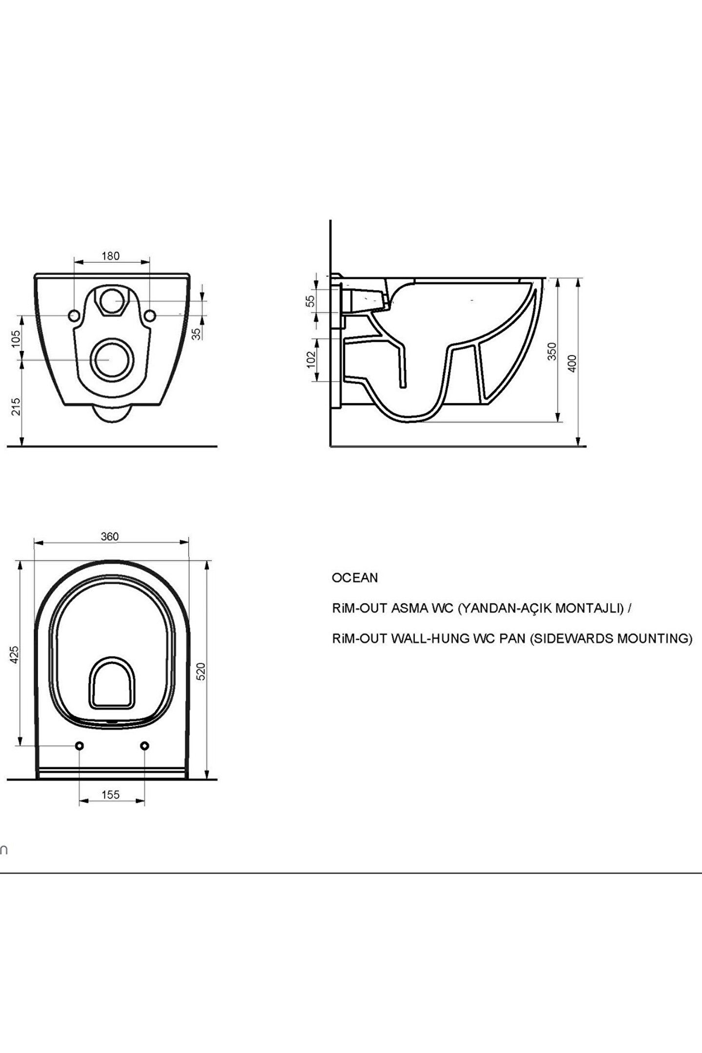 Ocean Kanalsız Asma Klozet A031171h, Yavaş Kapak ; TSE ;