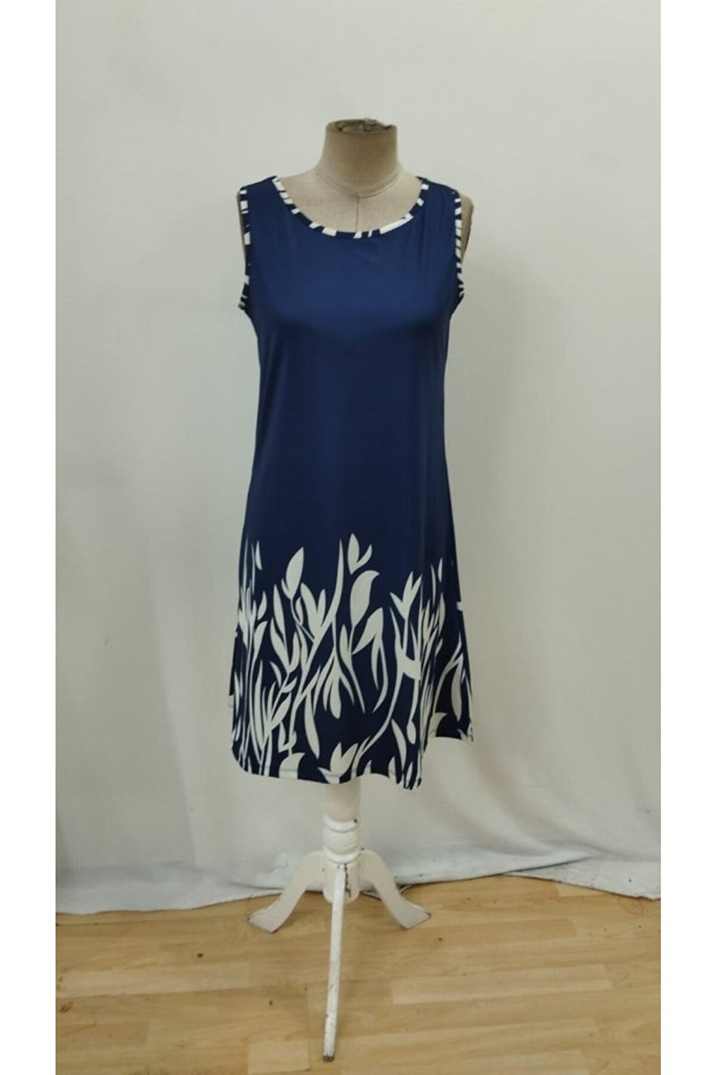 Kadın Askılı Yuvarlak Yakalı Yaprak Desenli Dalgıç Elbise