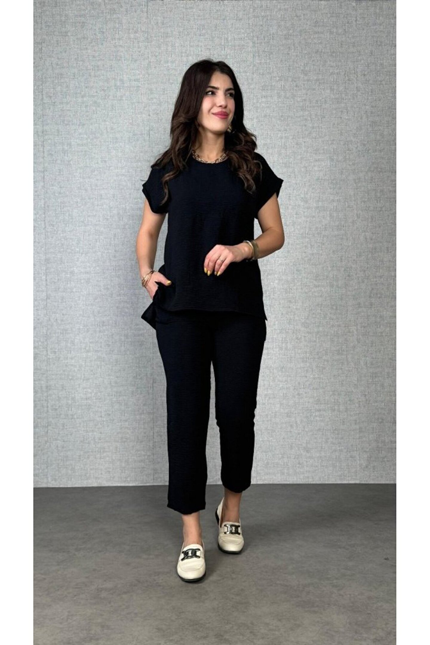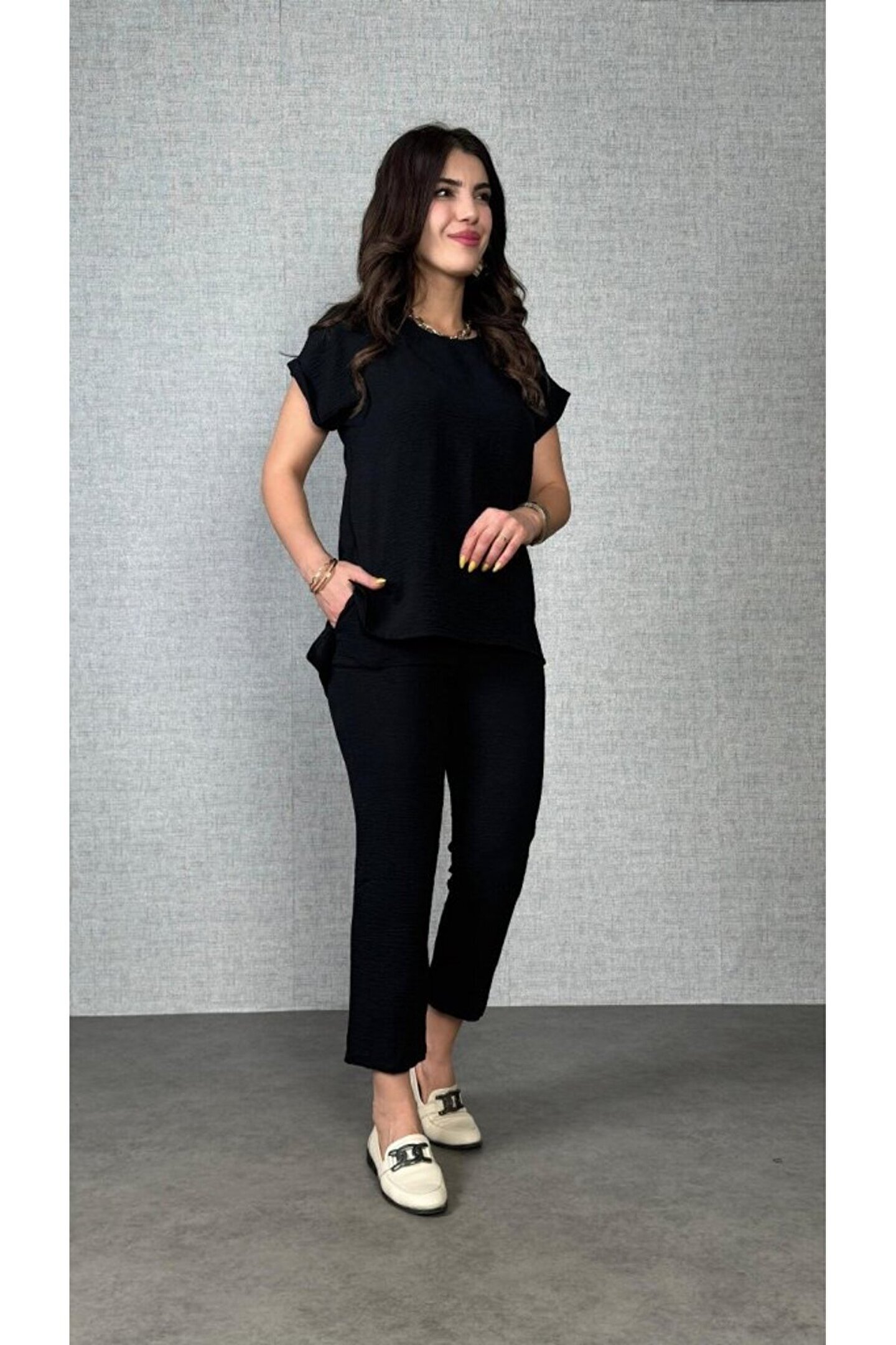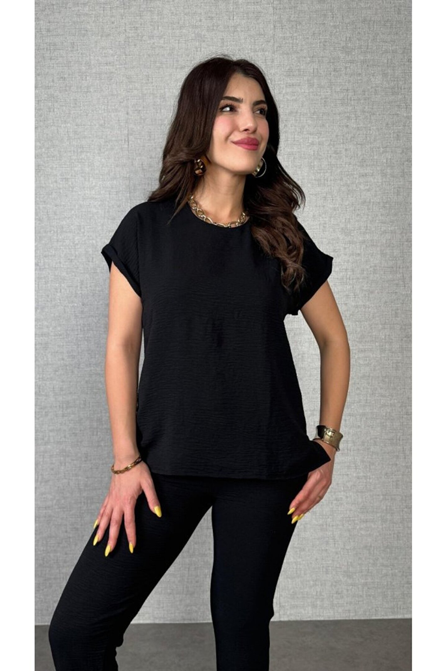Serero EQURİ Kadın Kısa Kollu Yuvarlak Yaka Aerobin Bluz Ve Pantolon Ikili Takım