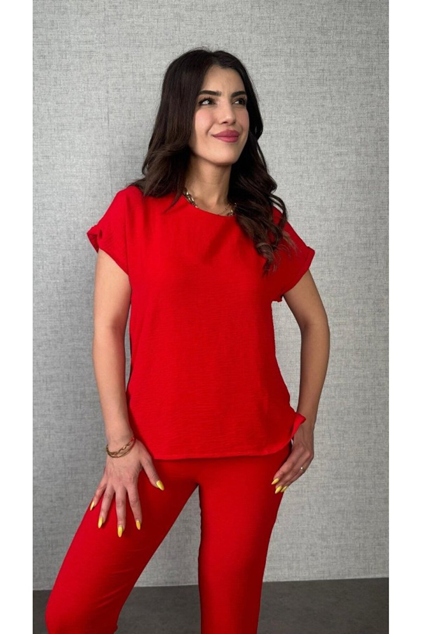 Kadın Kısa Kollu Yuvarlak Yaka Aerobin Bluz Ve Pantolon Ikili Takım