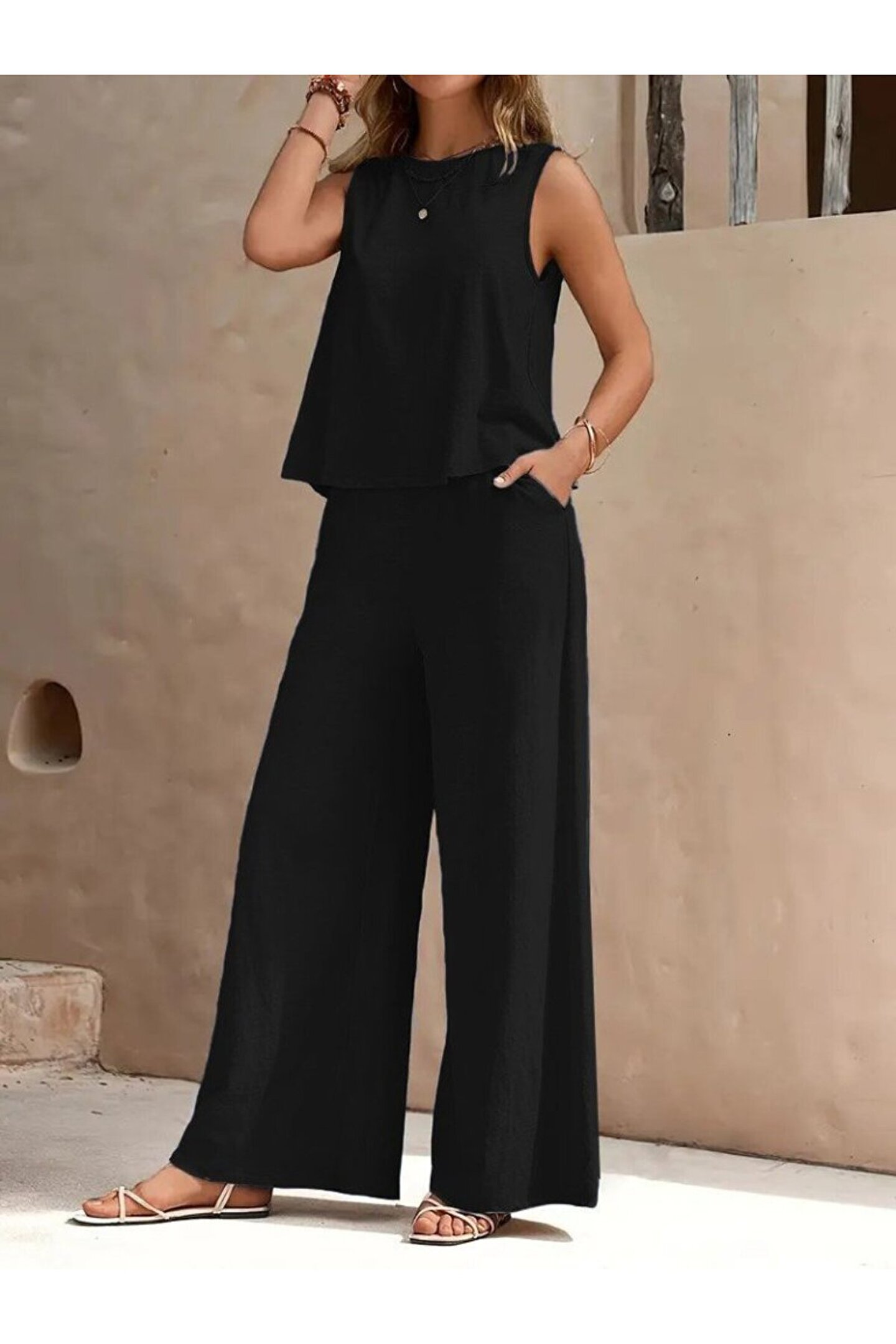 Kadın Sıfır Kollu Bisiklet Yaka Aerobin Bluz Ve Pantolon Ikili Takım