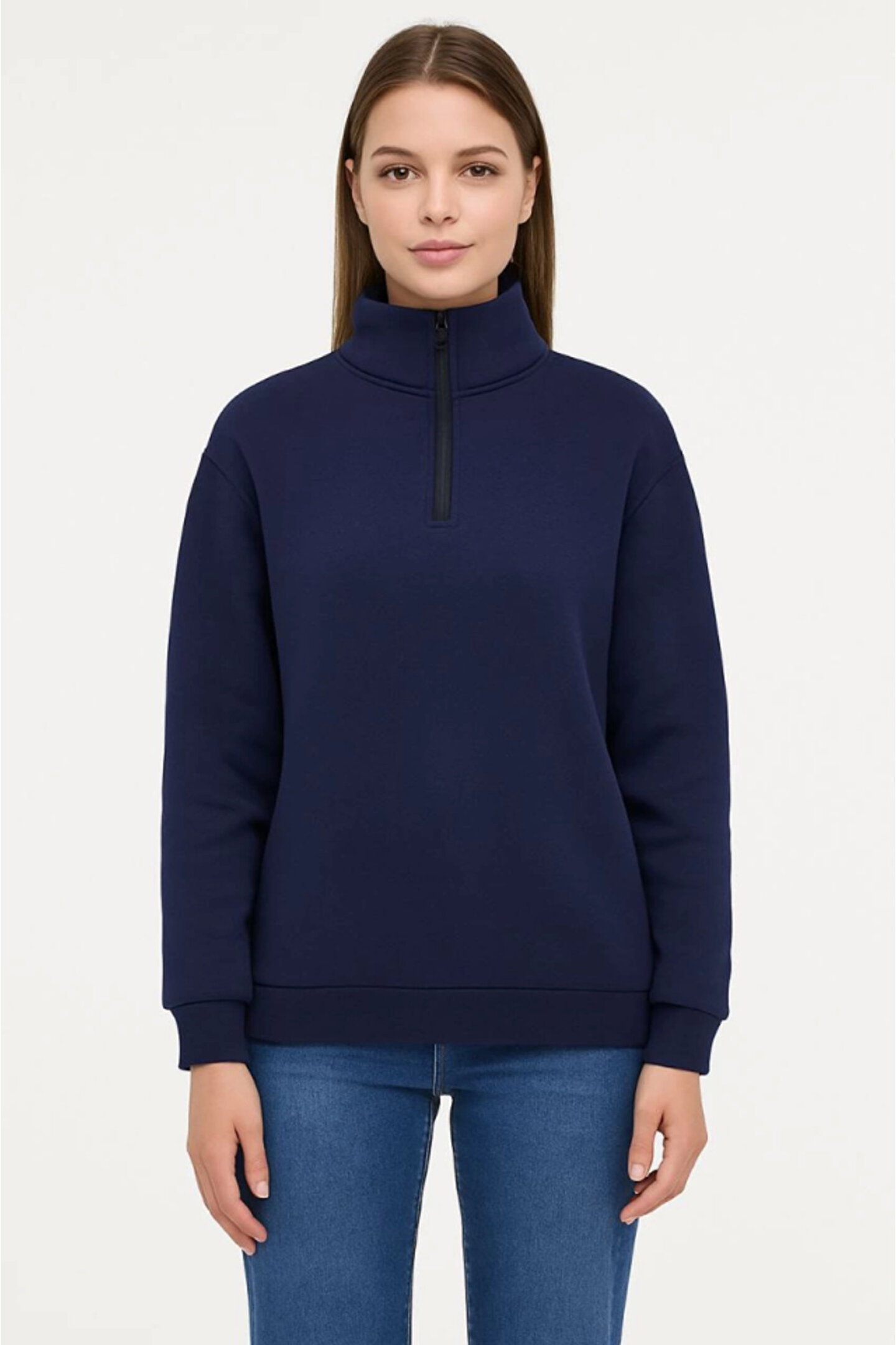 Serero EQURİ Üç İplik Dık Yaka Yarım Fermuarlı SweatShirt - Lacivert