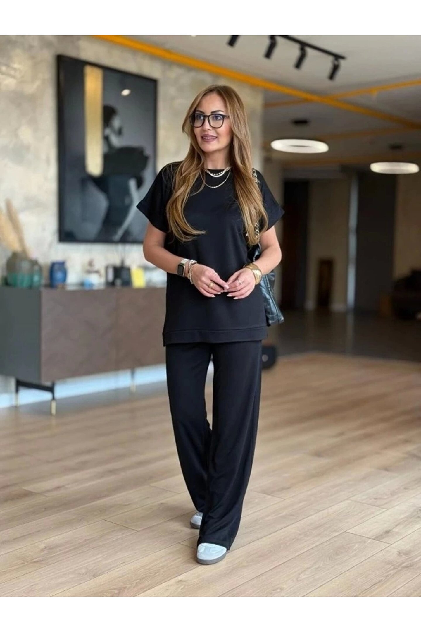 Kadın Kısa Kollu Bisiklet Yaka Viskon Iki Iplik Bluz Ve Pantolon Ikili Takım