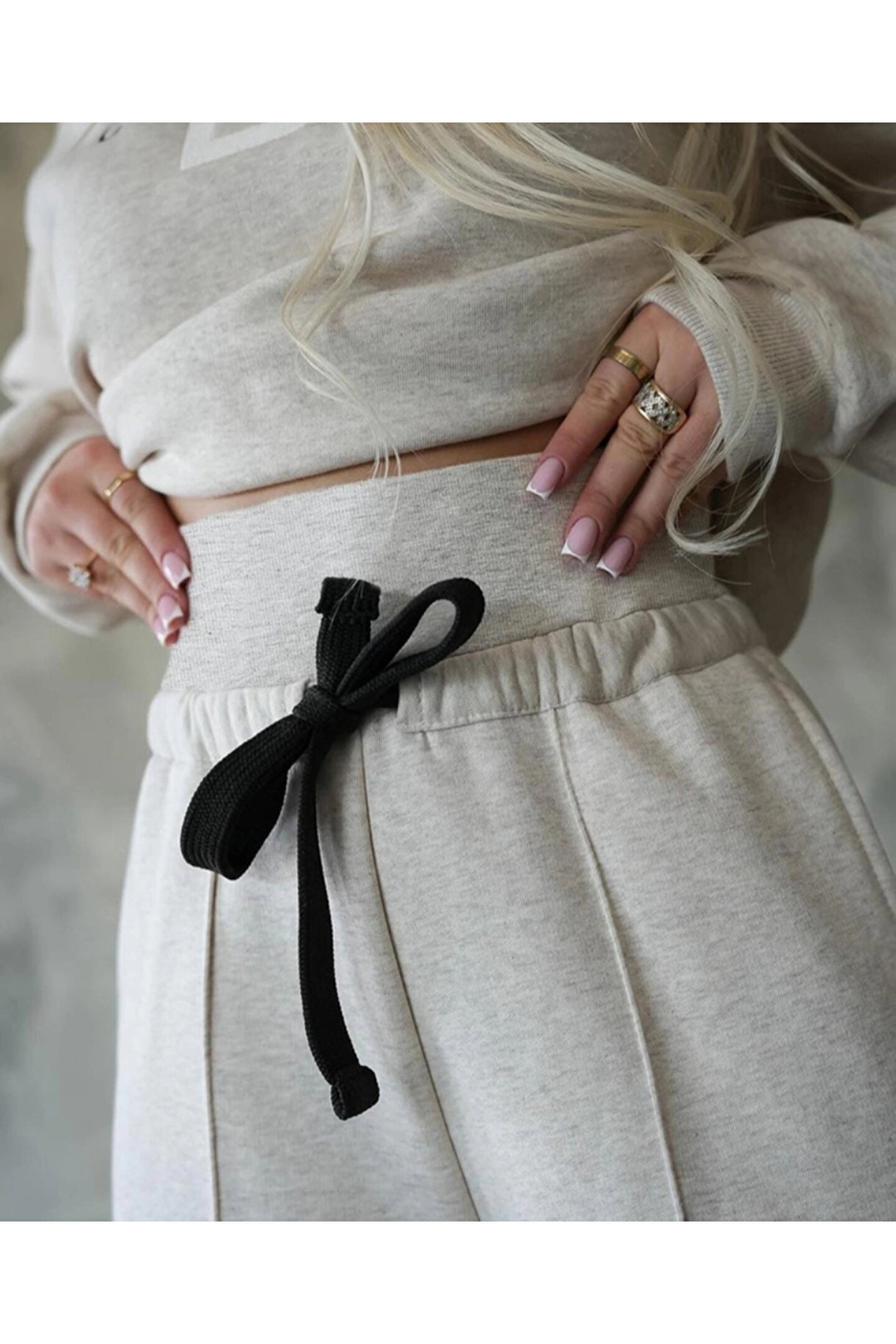 Kadın Uzun Kollu Nope Baskılı Beli Ribanalı Ikili Takım