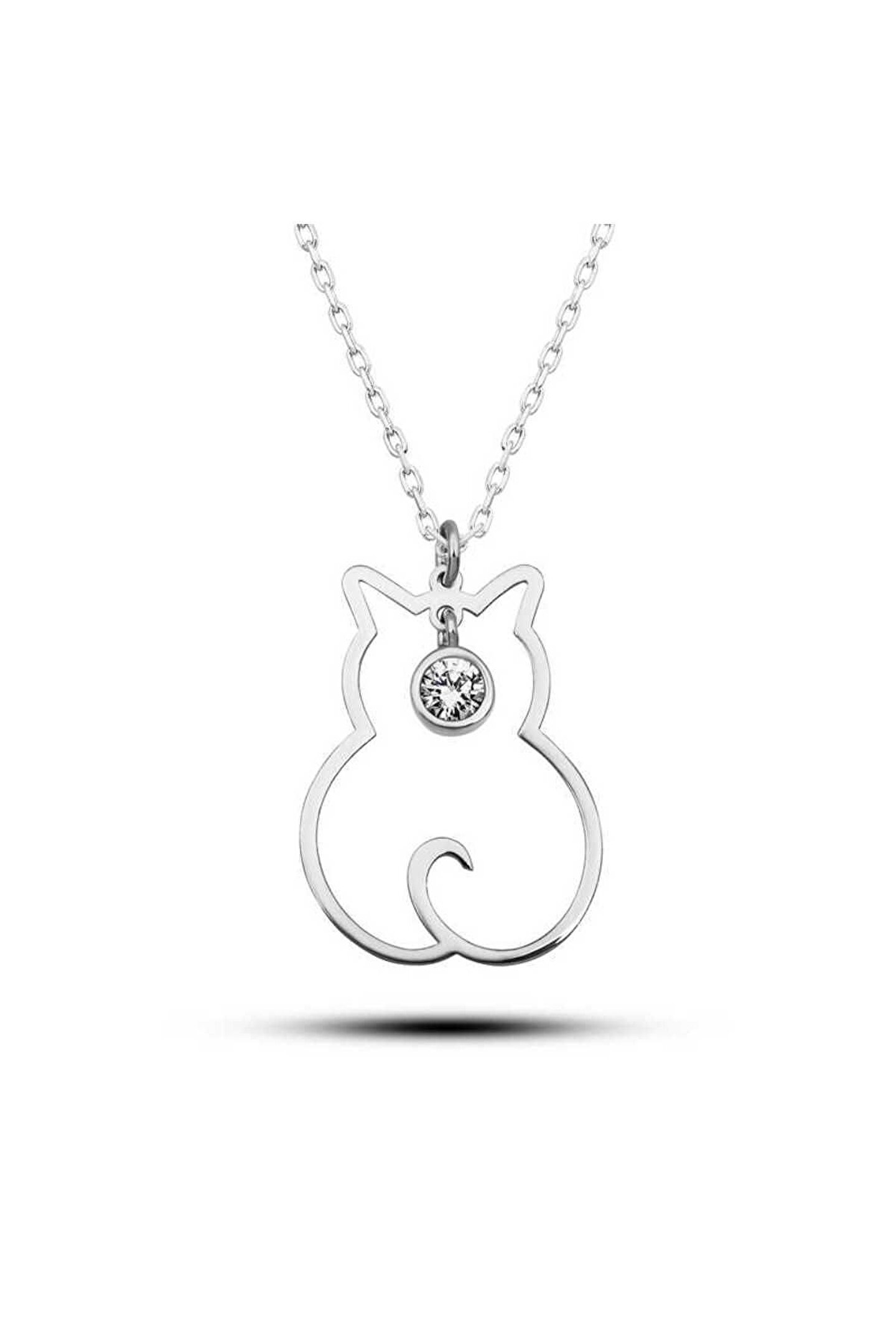 925 Ayar Gümüş Nisan Ayı Doğum Taşı Kedi Kadın Kolye