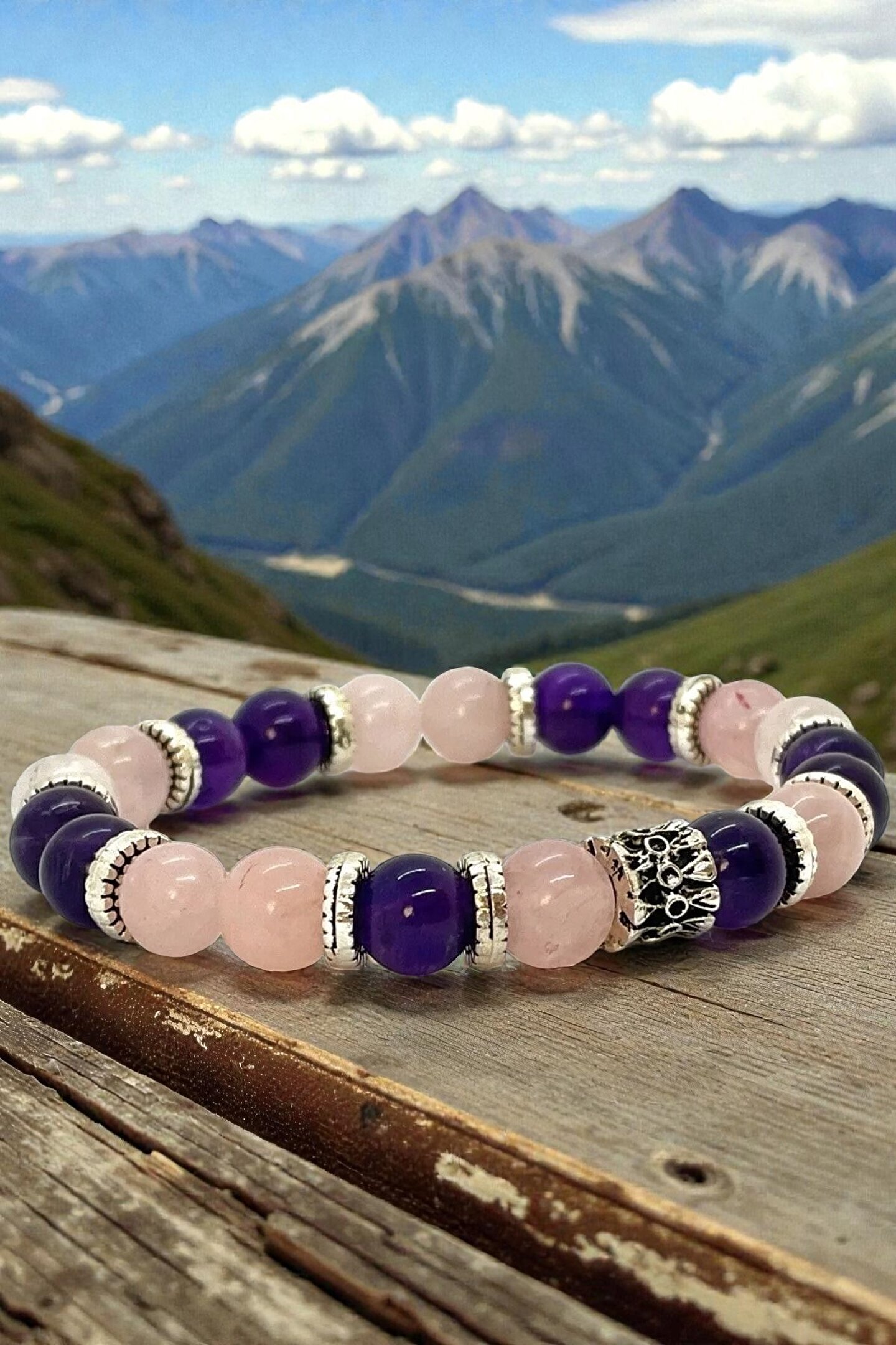 - Doğal taşlardan üretilmiş, her biri benzersiz özelliklere sahip Ametist ve Pembe Kuvars taşlarıyla tasarlanmıştır.; - Diğer bilekliklerden farklı olarak, aşkı ve pozitif enerjiyi mıknatıs gibi çekmeye yardımcı olduğuna inanılan özel bir tasarıma sahiptir.; - Yetişkinler için uygun olan bu bileklik, hem kadınların hem de erkeklerin kullanımına uygundur ve unisex bir tasarıma sahiptir.; - Türkiye'de üretilmiş olup, yerel işçilik ve doğal kaynakların birleşimiyle ortaya çıkarılmıştır.; - Hem şıklığı hem de anlamı bir arada sunan bu bileklik, sevdiklerinize özel bir hediye alternatifi olarak da tercih edilebilir.;