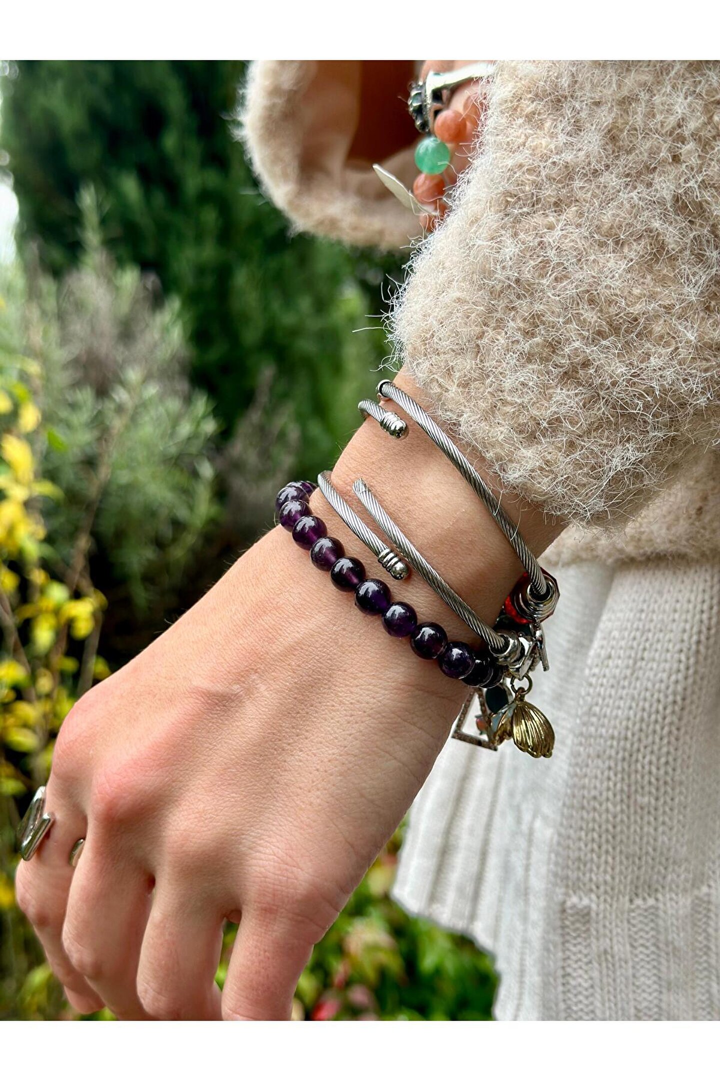 sezaiiletişim 8 Mm Ametist Taşı Erkek Kadın Doğal Taş Bileklik A Kalite