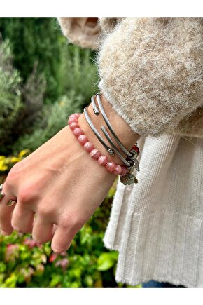 sezaiiletişim 8 Mm Rodokrozit Taşı Erkek Kadın Doğal Taş Bileklik Aaa Kalite
