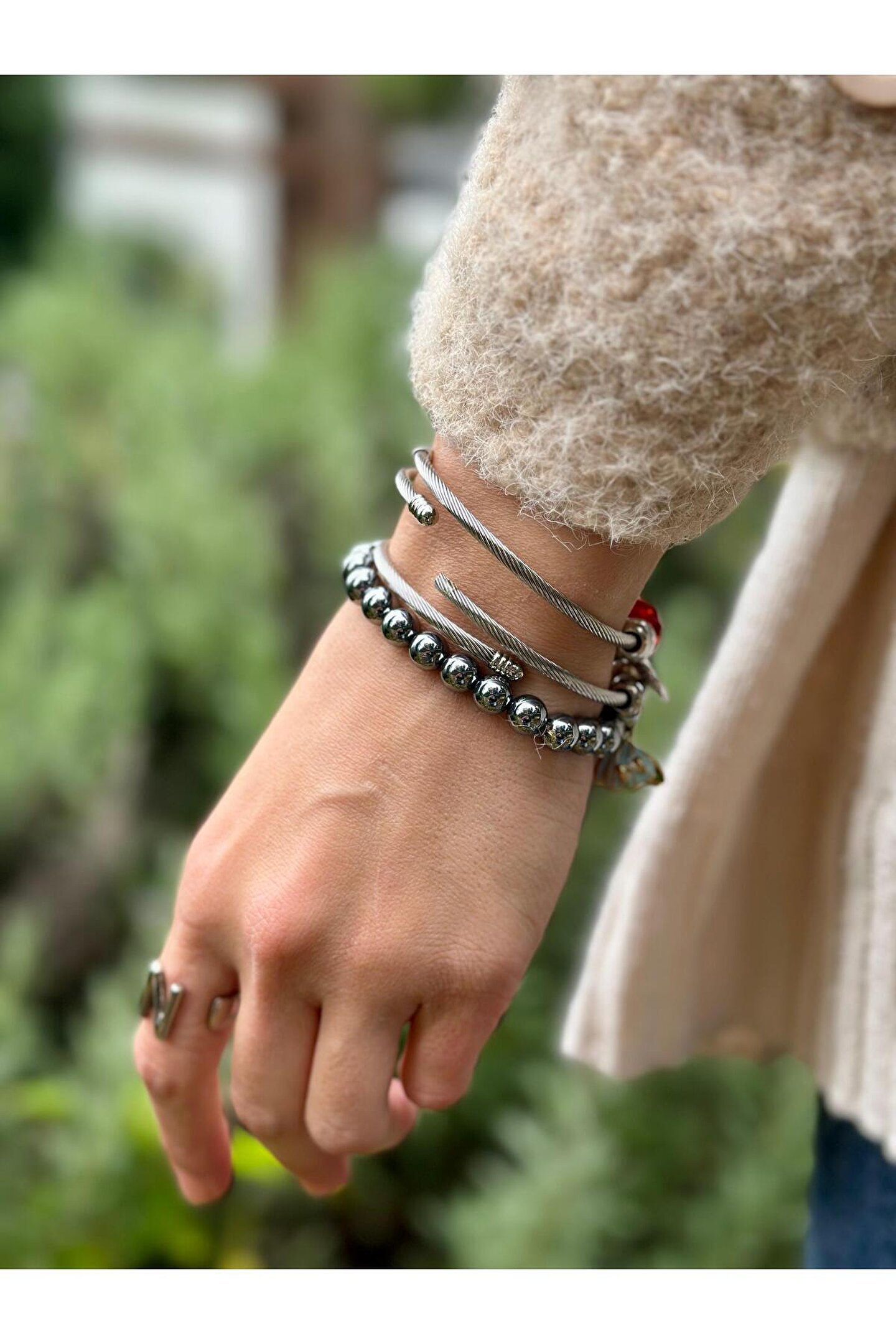 sezaiiletişim 8 Mm Terahertz Taşı Erkek Kadın Doğal Taş Bileklik Aa Kalite