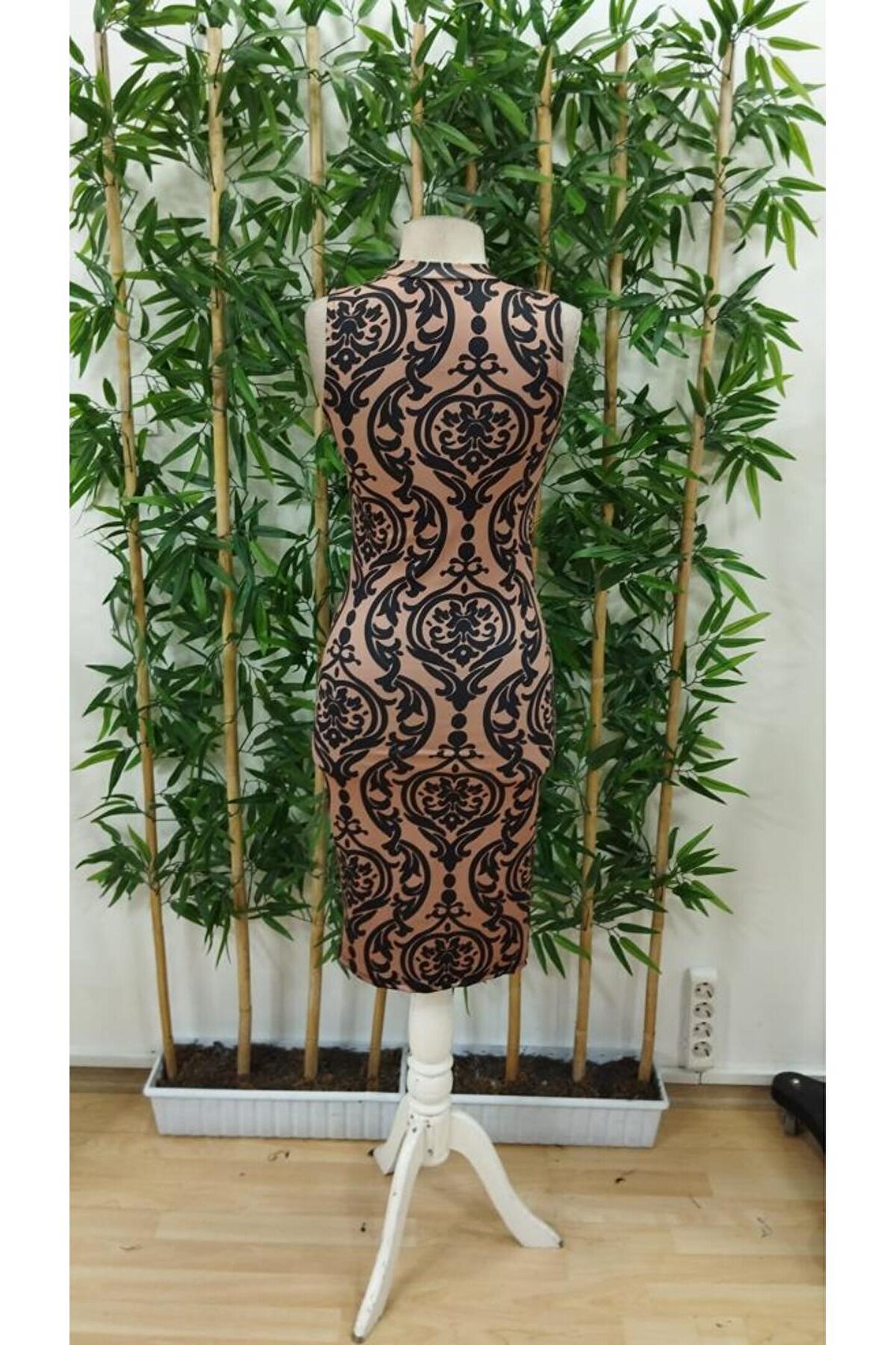 SGM BUTİK Kadın Kolsuz Yarı Balıkçı Yaka Desenli Dalgıç Elbise