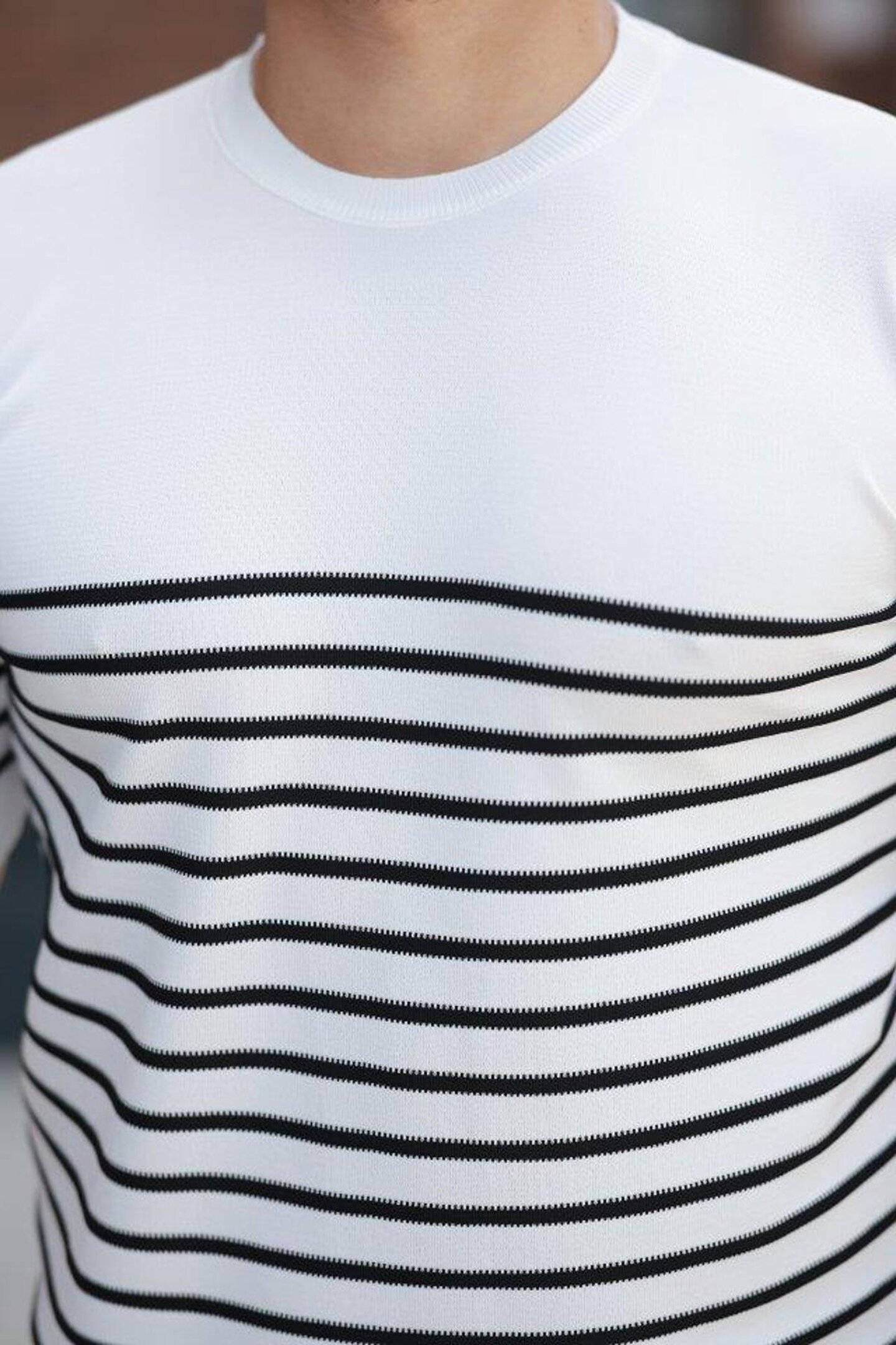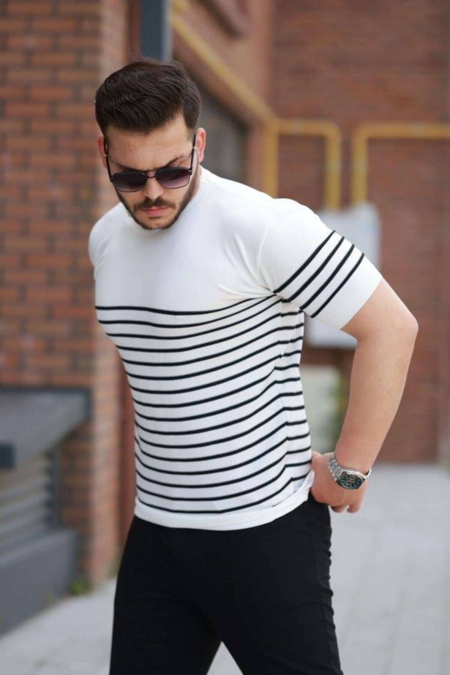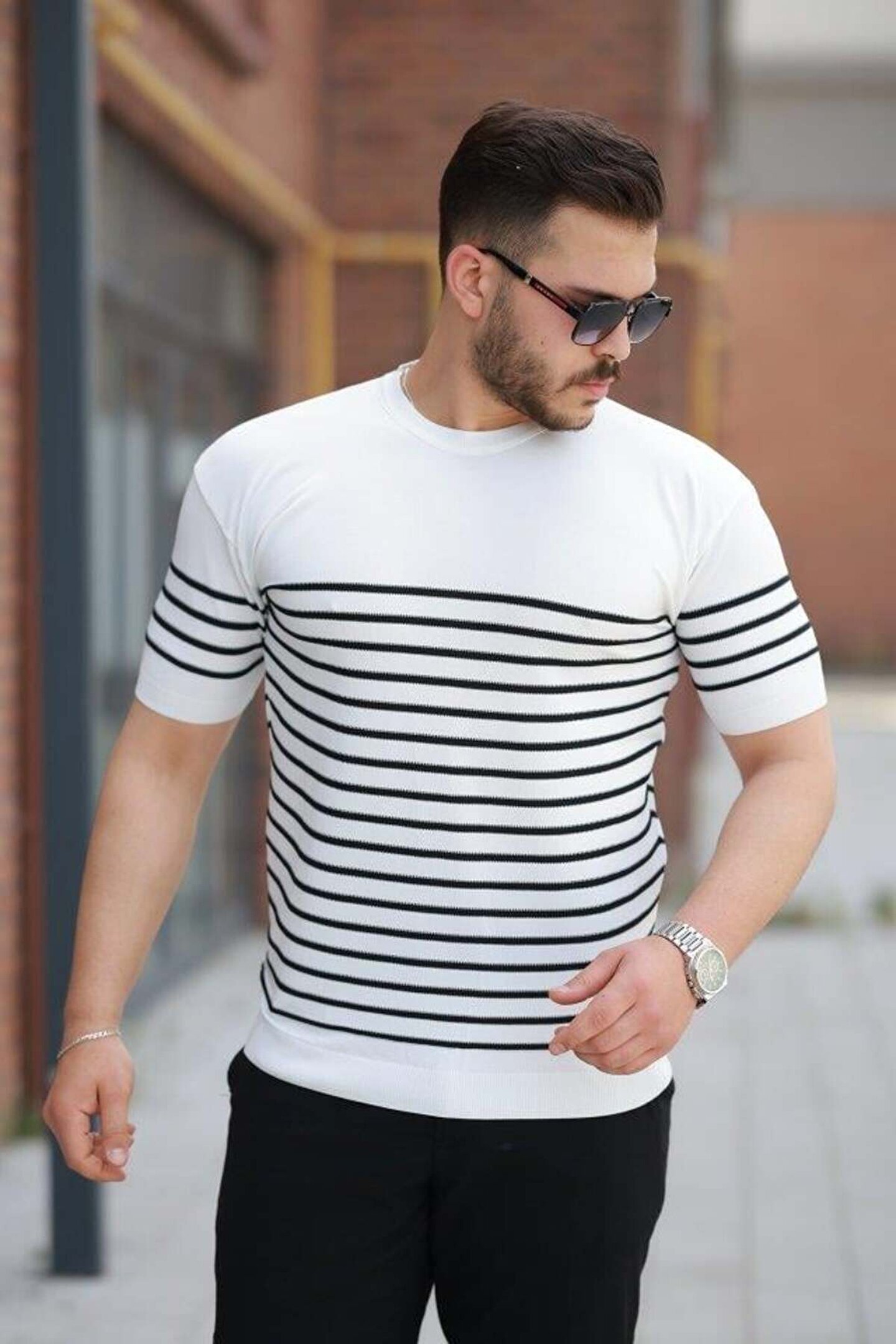 shopivastore Erkek çizgi Desenli Bisiklet Yaka Kısa Kollu T-sihrt